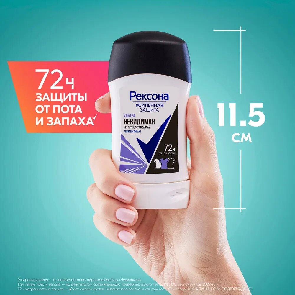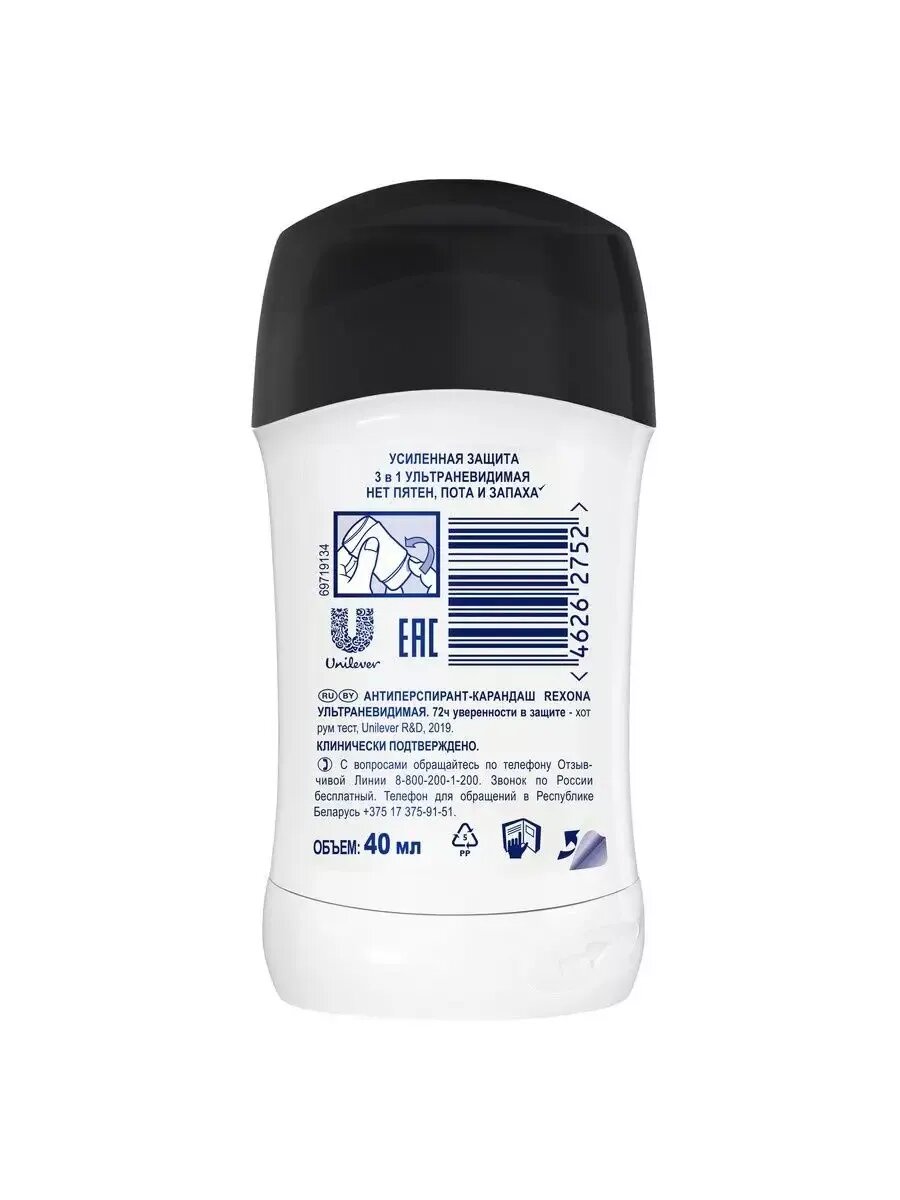 РЕКСОНА Антиперспирант-карандаш 3в1 "Ультраневидимая" 72ч уверенности нет пятен, пота и запаха жен, 40 мл
