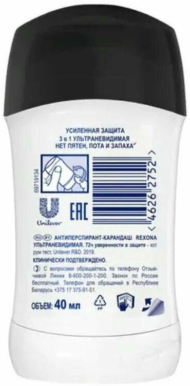 Купить REXONA Антиперспирант-карандаш 3в1 "Ультраневидимая" 72ч уверенности нет пятен, пота и запаха жен., 40 мл