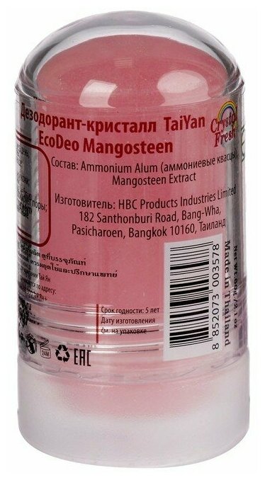 Дезодорант - кристалл EcoDeo с Мангостином TaiYan, женский, мужской, от пота, натуральный дезодорант, минеральный кристаллический, 60г интересное: