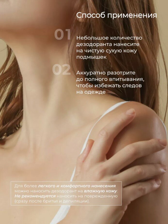 | Дополнительная информация | Натуральные ингредиенты, безопасный состав, не блокирует работу потовых желез, ухаживает за кожей |