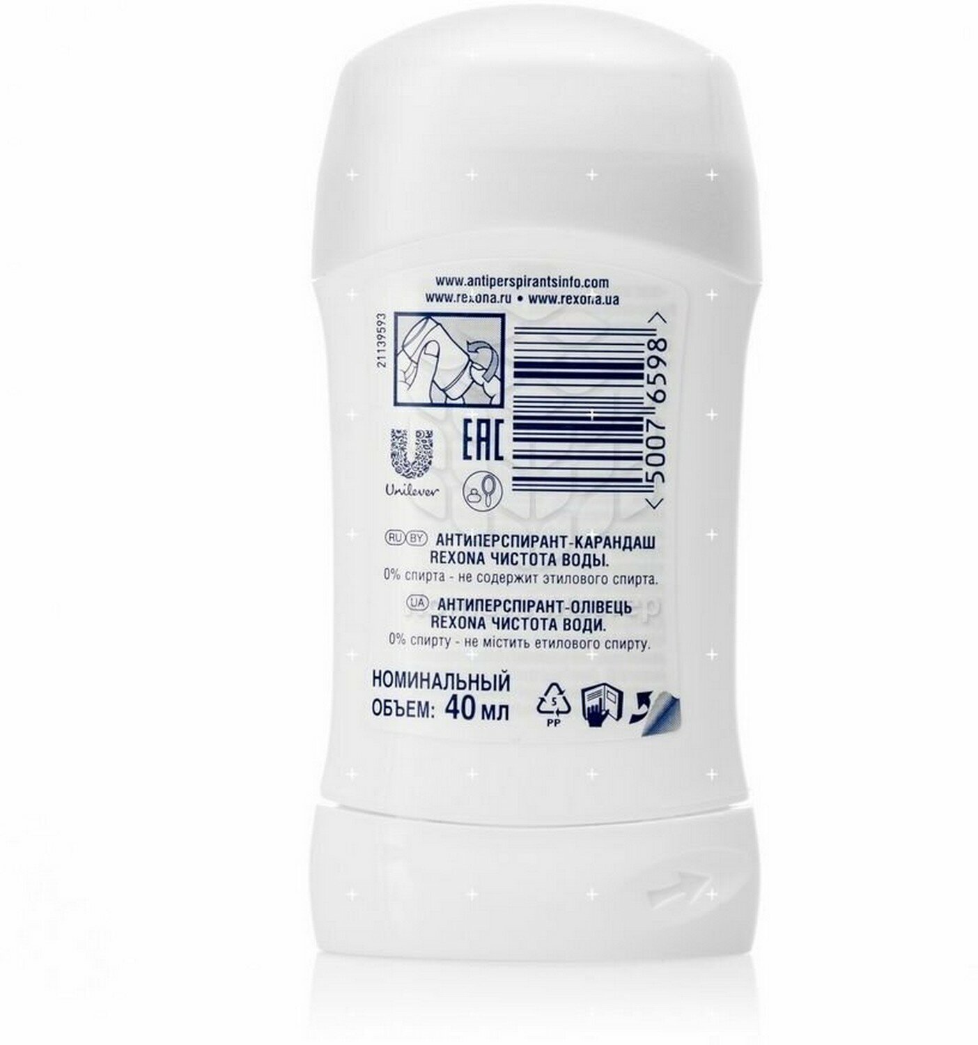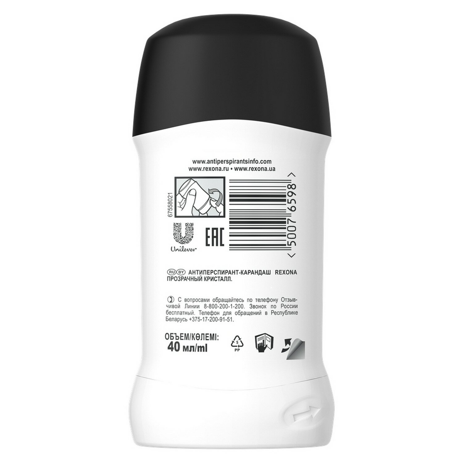| Способ применения | Поверните основание контейнера и проведите «карандашом» по чистой и сухой коже подмышек. |