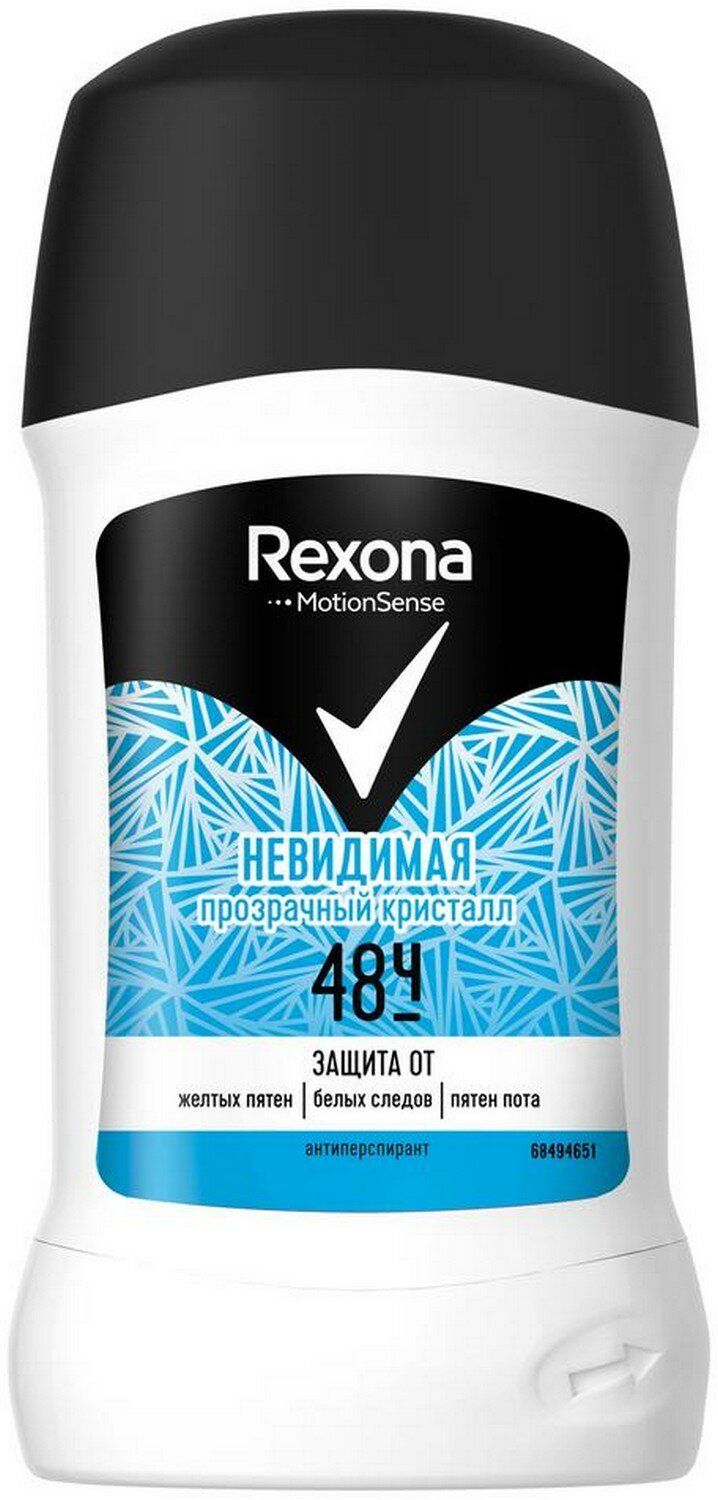 Rexona Дезодорант-антиперспирант стик MotionSense Невидимая прозрачный кристалл, 40 мл - 1 шт