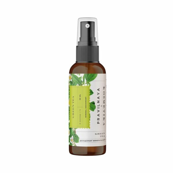 Минеральный дезодорант спрей для тела и ног Pravilnaya Kosmetika универсальный от пота и запаха Зеленый Чай, 50 мл