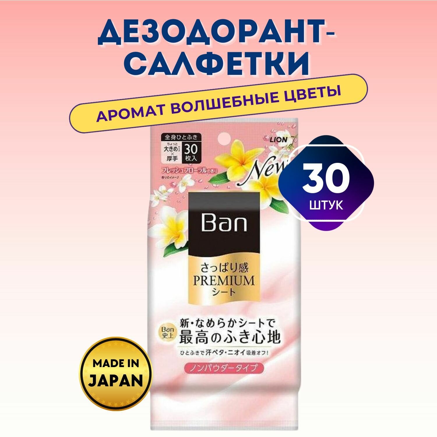 Lion Дезодорант для всего тела в форме салфеток Ban Premium, аромат цветочный, 30шт