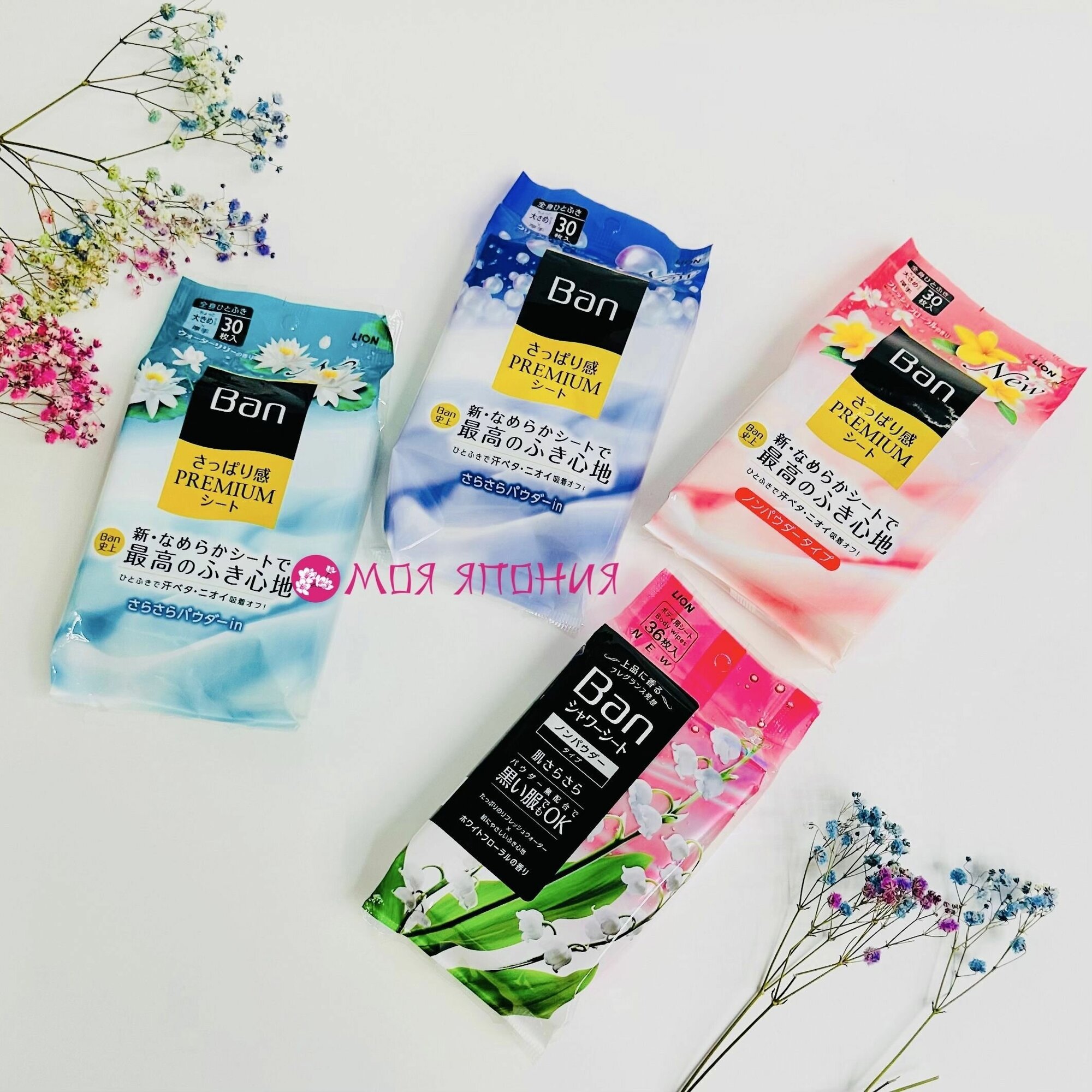LION Дезодорант для всего тела в форме салфеток "Ban Premium Refresh Shower Sheets" с пудрой, аромат Цветущий лотосSheets", без пудры, аромат "Волшебные цветы" 30шт