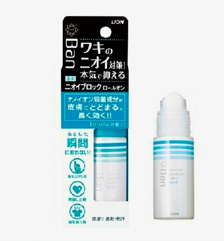 Lion Дезодорант-антиперспирант роликовый Ban нано-ионный блокирующий рост бактерий 40мл