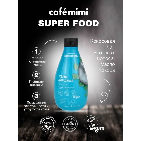 Купить Гель для душа Кокос & Лотос Cafe mimi 370 мл