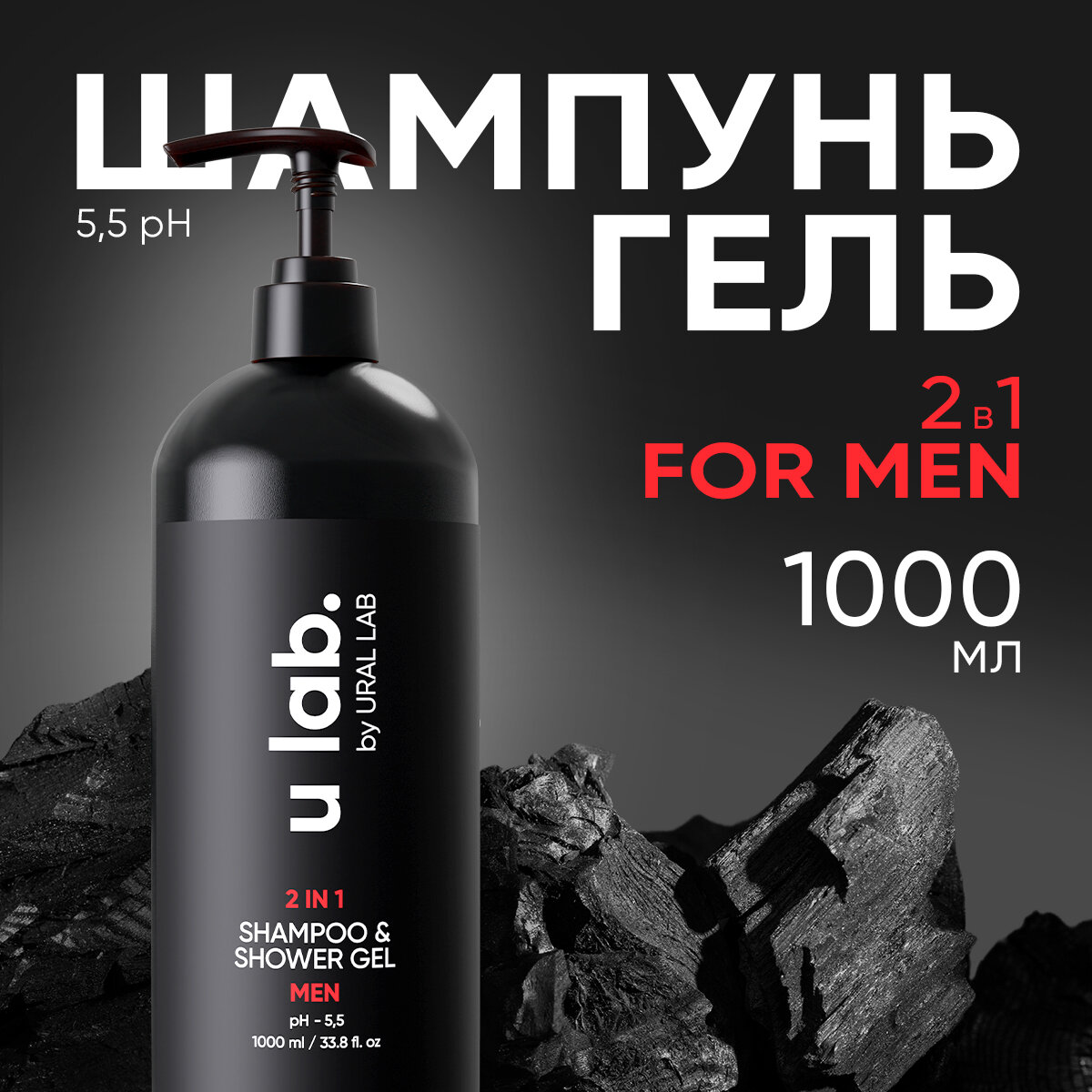 Гель - шампунь мужской 2 в 1 профессиональный с дозатором u lab 1л интересное: