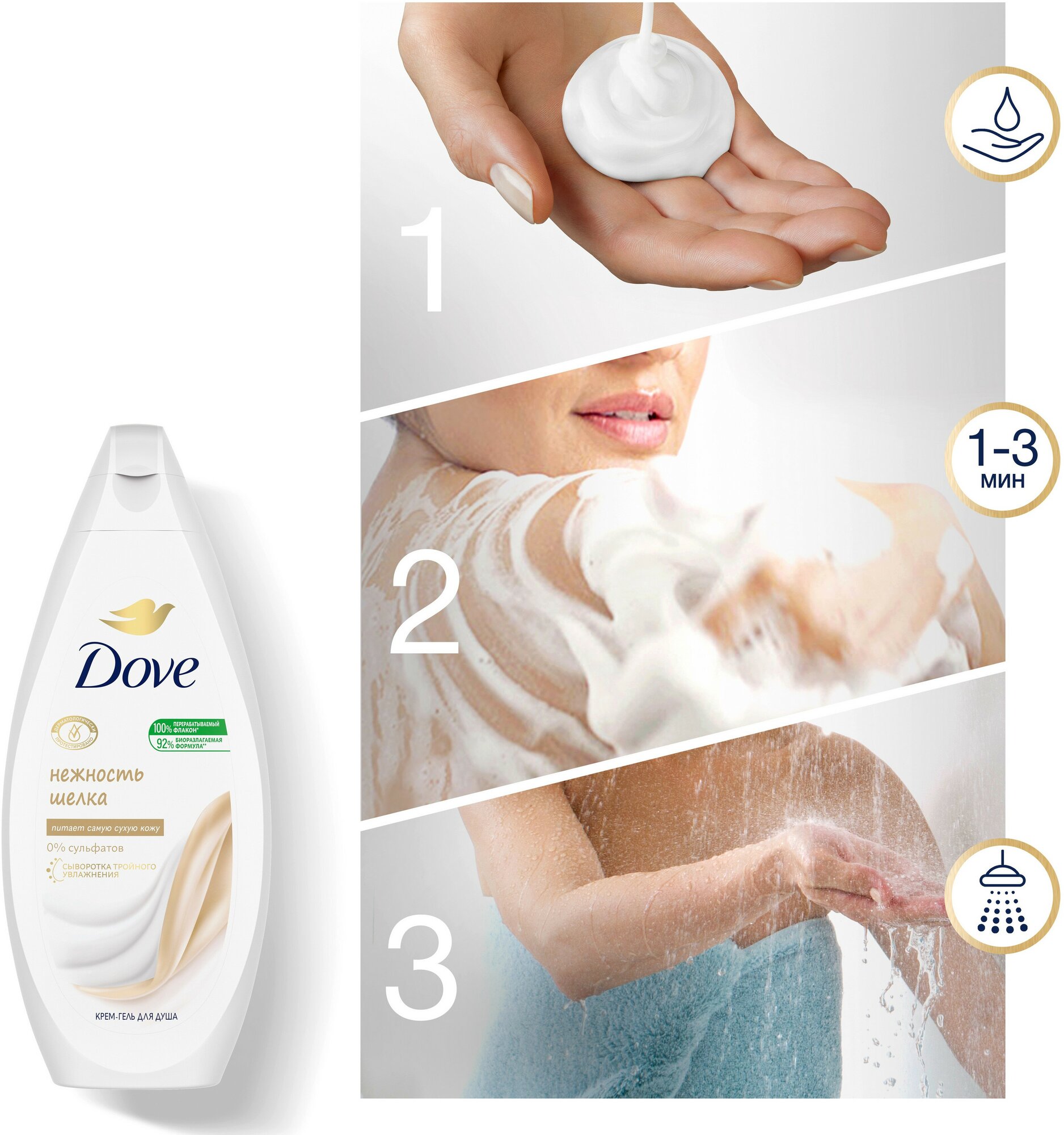 Dove бессульфатный крем-гель для душа Нежность шелка 250 мл интересное: