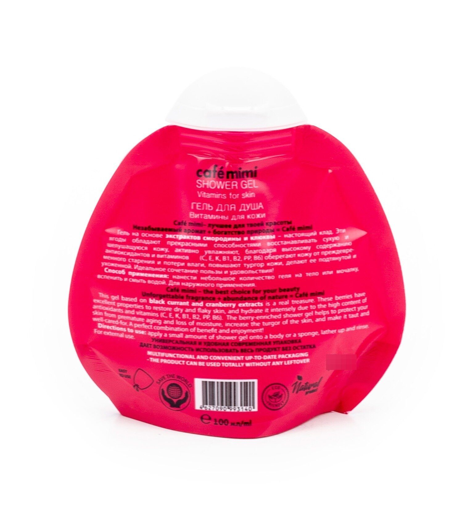 Cafe mimi Гель для душа Витамины для кожи Экстракты смородины и клюквы 250 мл дой-пак