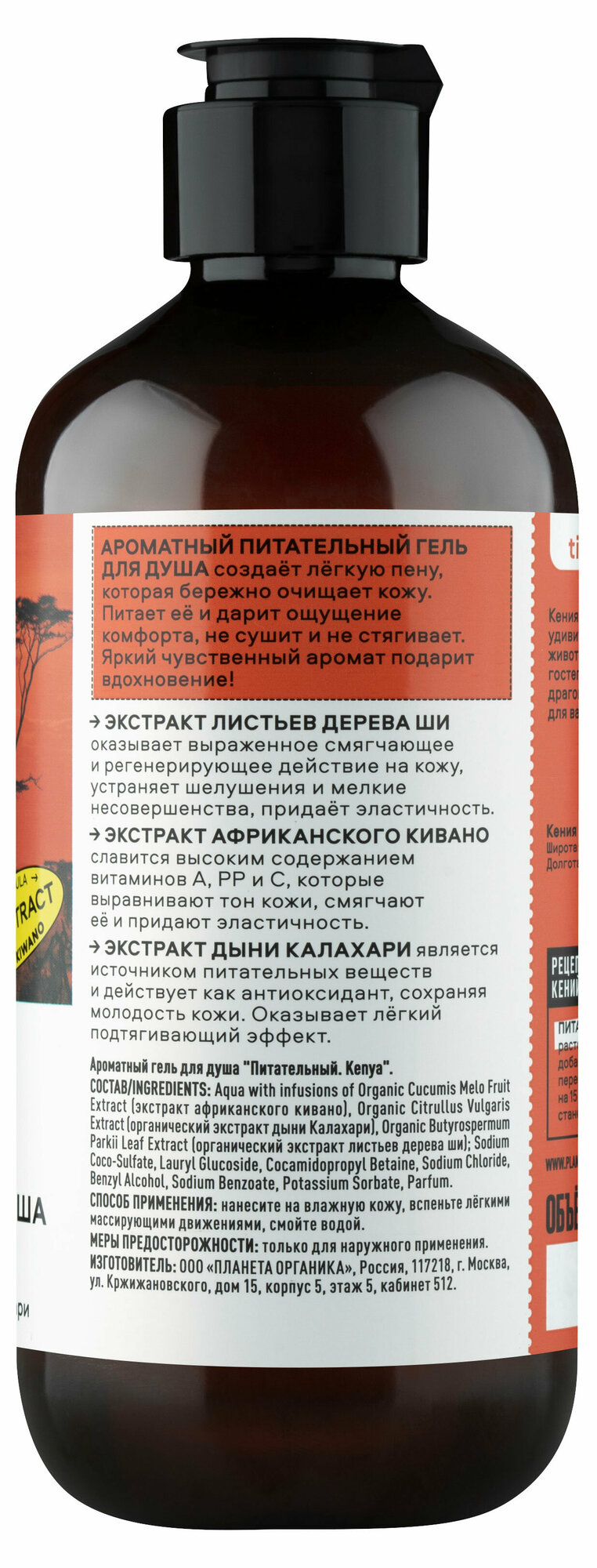 Ароматный гель для душа "Питательный" Planeta Organica Ticket to Kenya, 400 мл интересное: