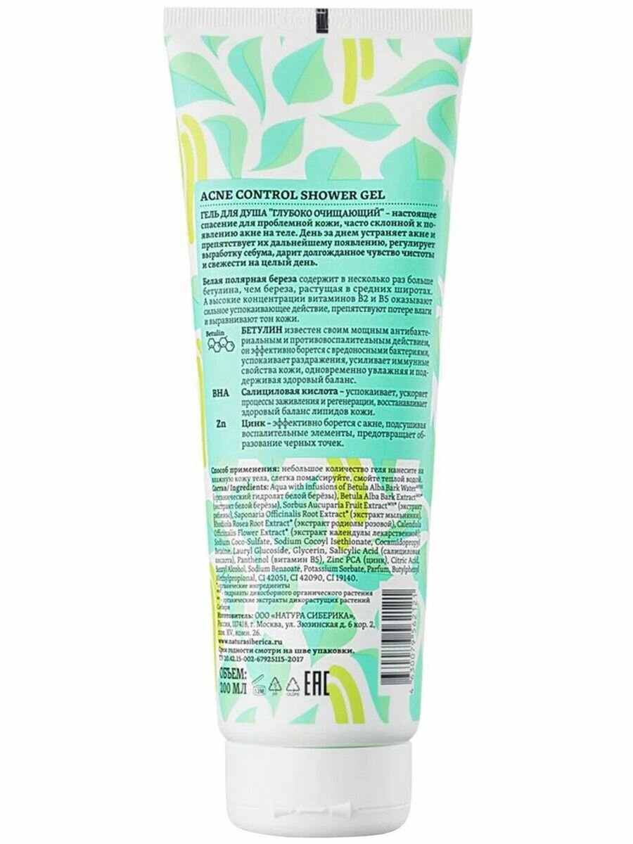 Natura Siberica Гель для душа для проблемной кожи от акне Bereza Siberica, 200 мл