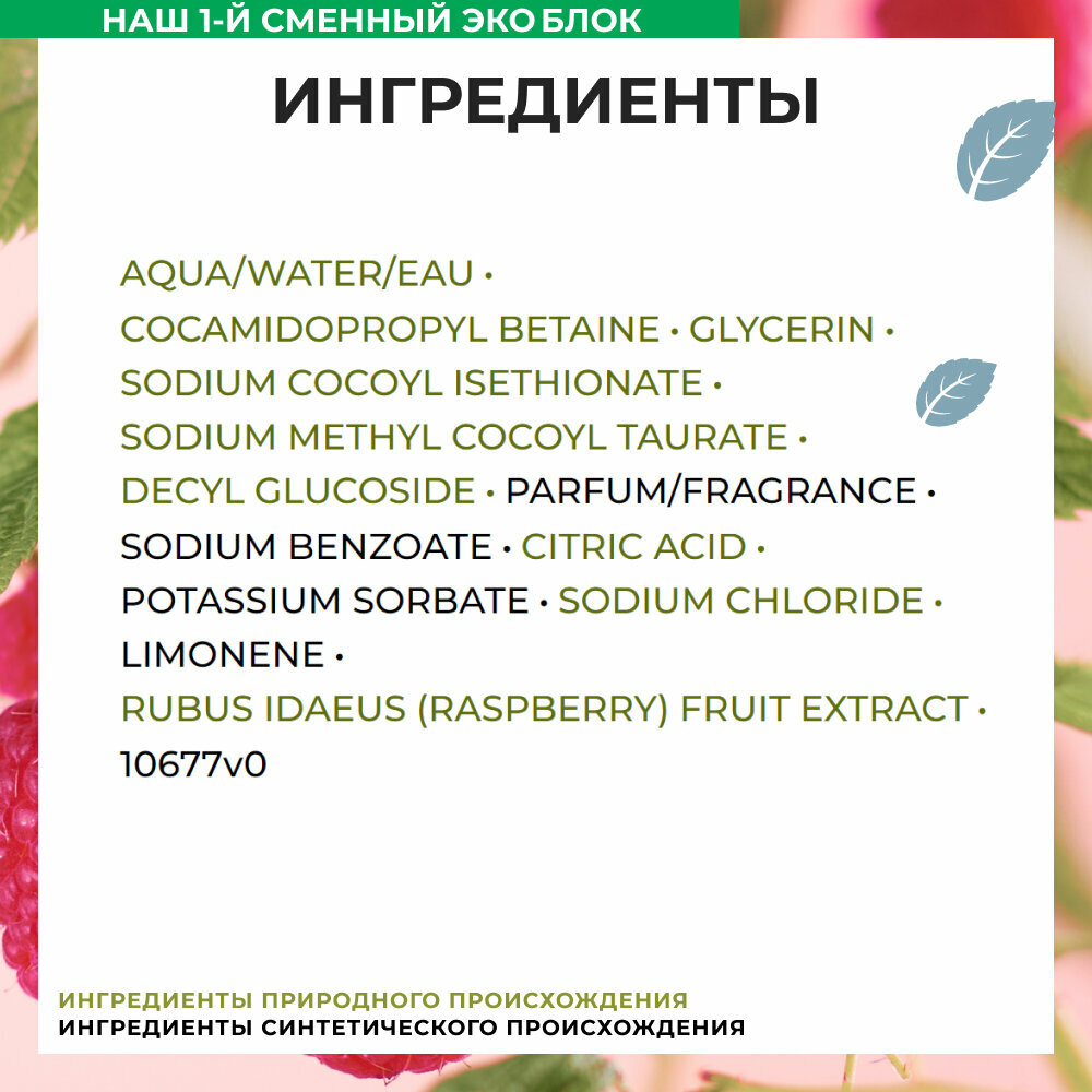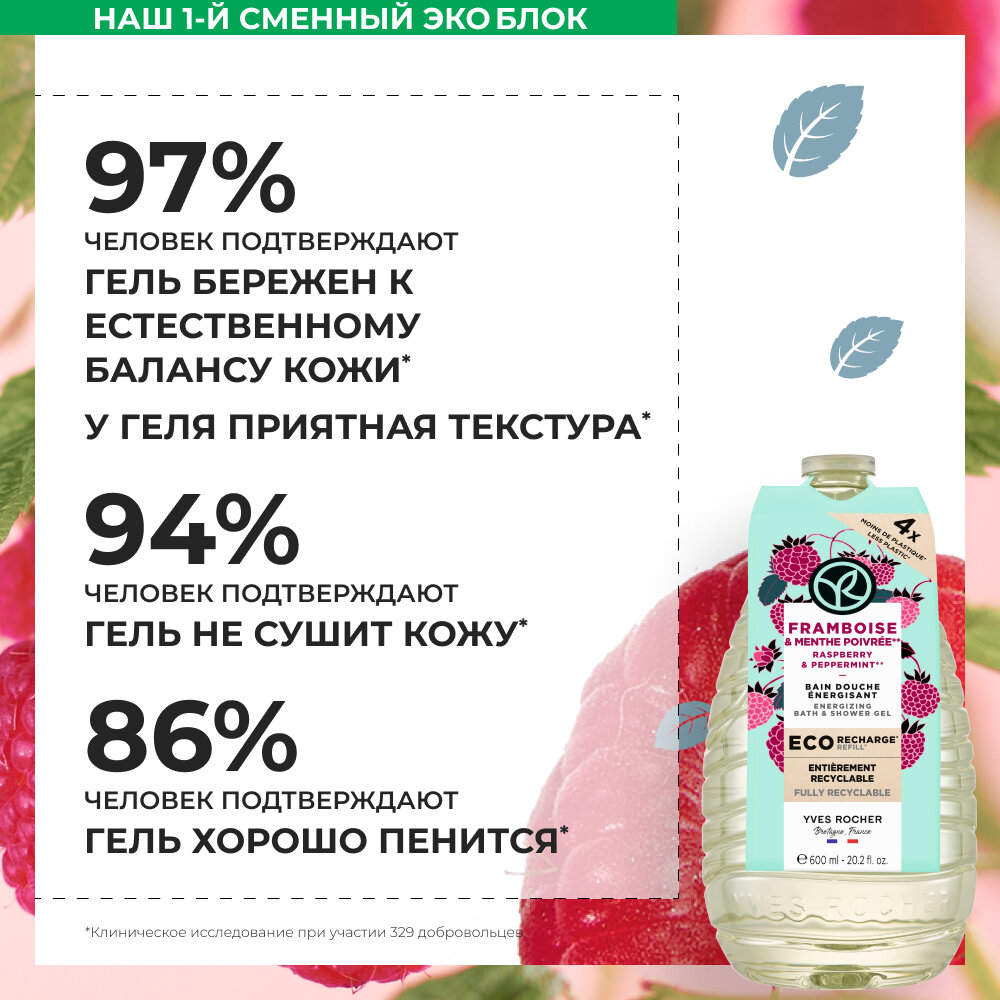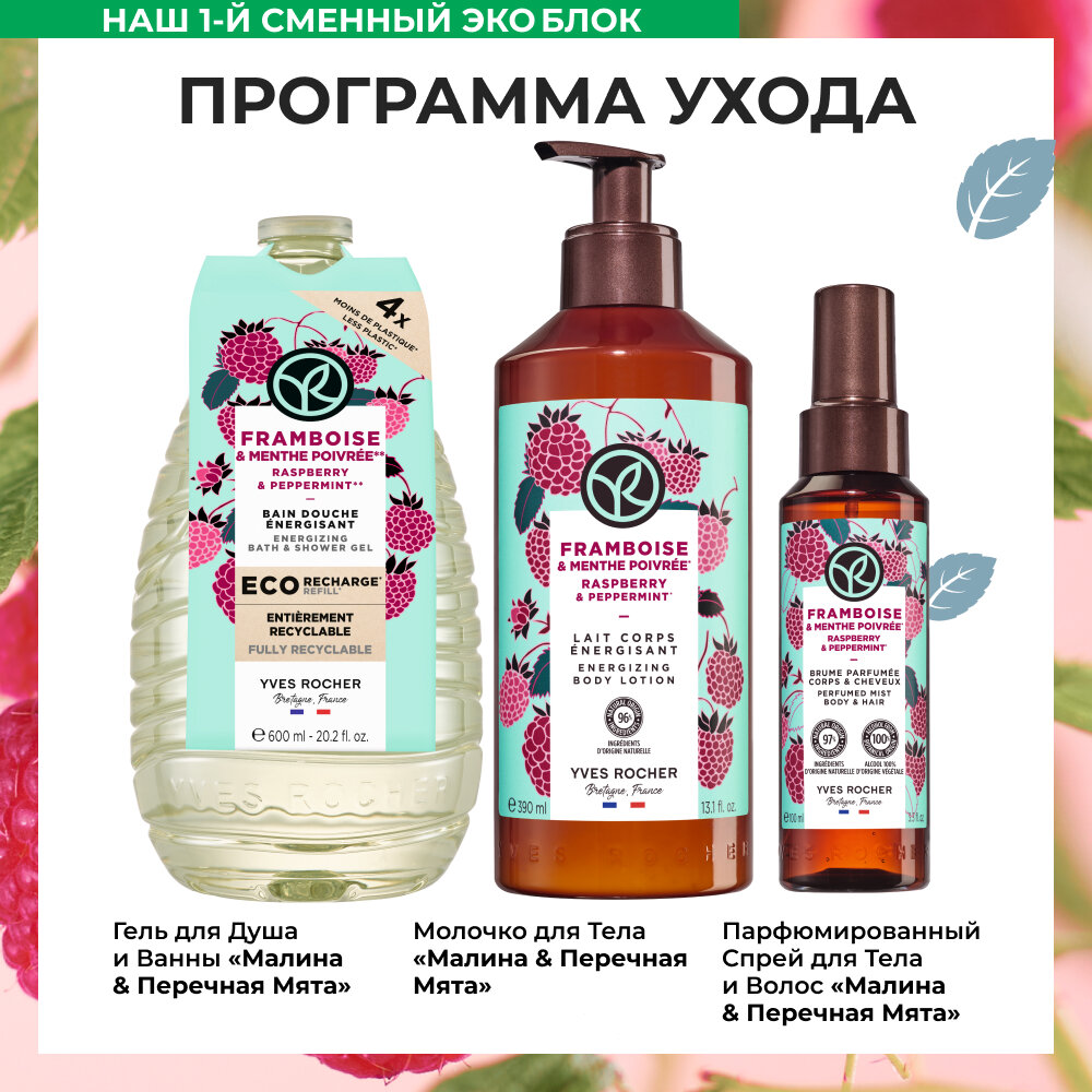 Yves Rocher Гель для ванны и душа "Малина и перечная мята" - сменный эко-блок 600мл