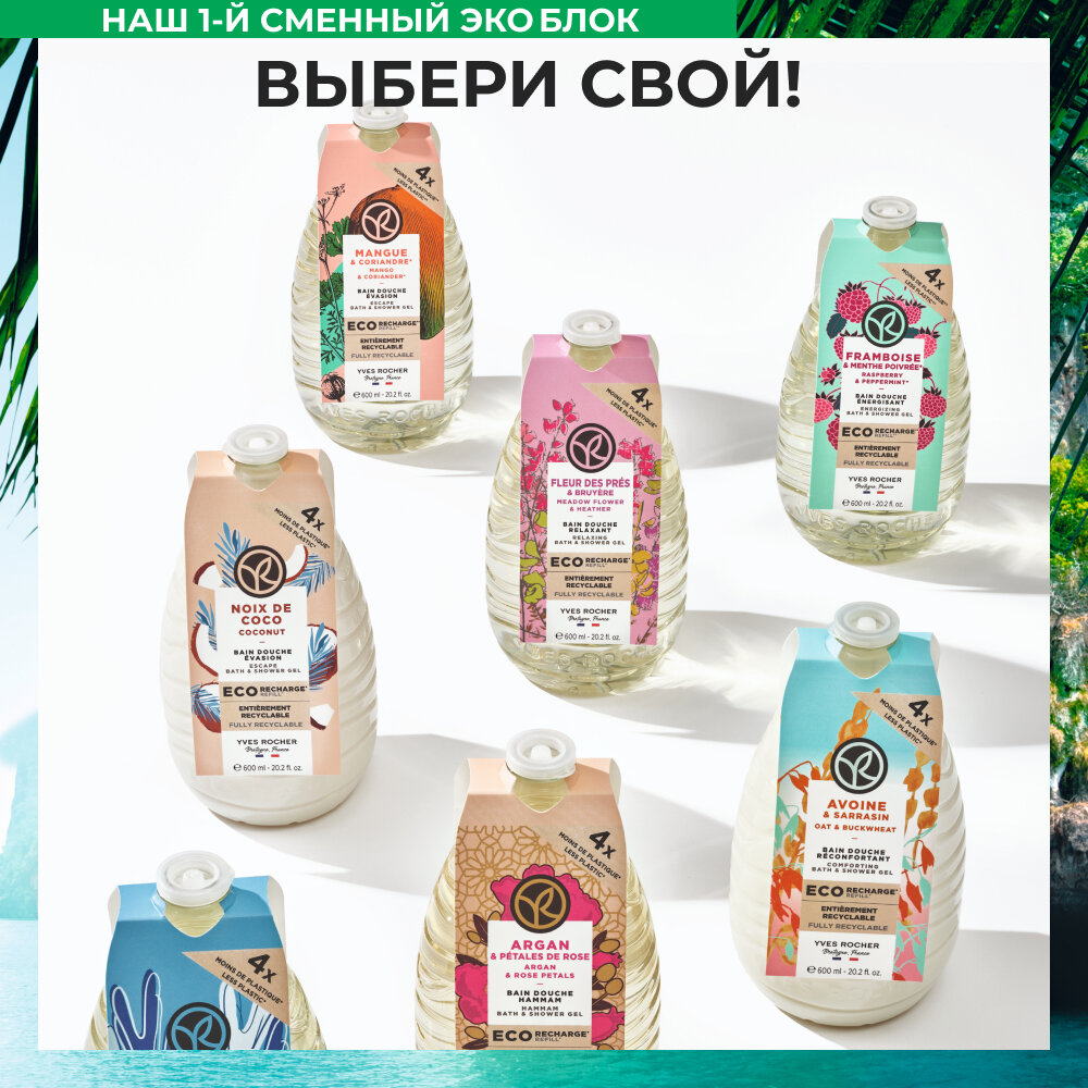 Yves Rocher Гель для ванны и душа "Малина и перечная мята" - сменный эко-блок 600мл