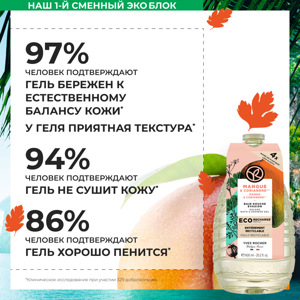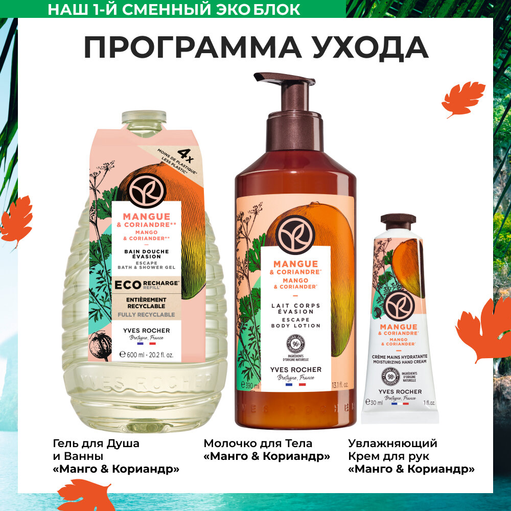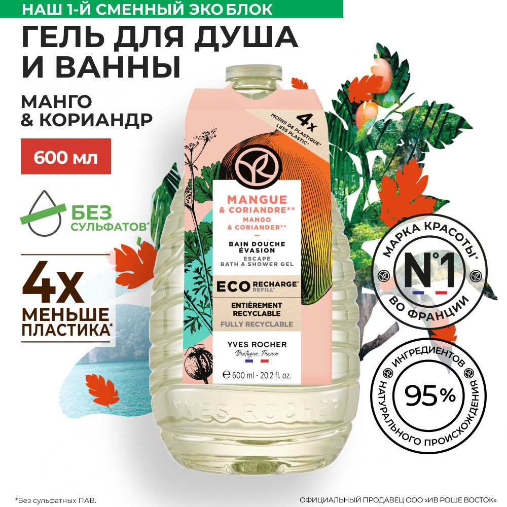 Yves Rocher Гель для душа и ванны «Манго и кориандр», 600 мл