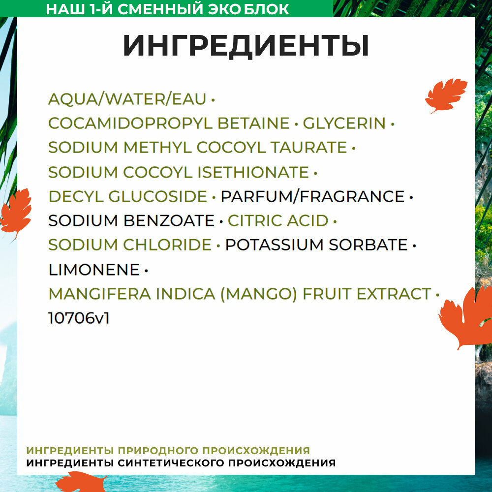 | Особенности | биоразлагаемый / не тестируется на животных / перерабатываемая упаковка / подходит для ежедневного применения / упаковка из переработанных материалов |