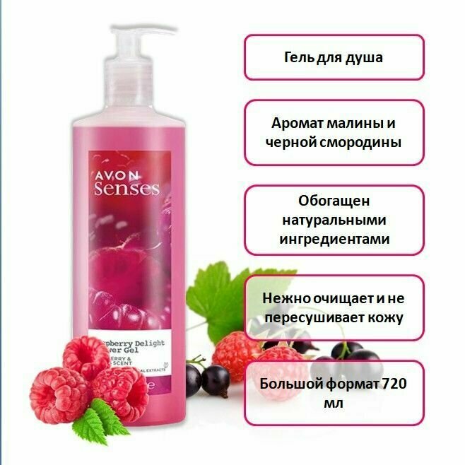 Гель для душа Avon "Малиновое удовольствие", 720 мл