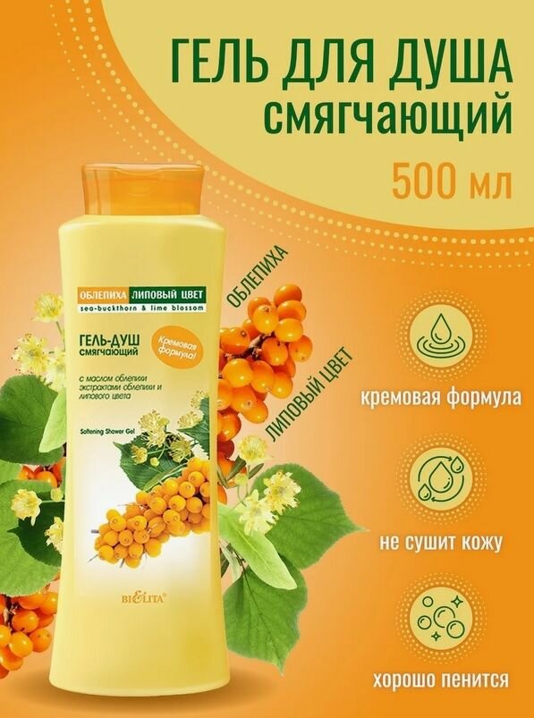 Гель-душ Белита, смягчающий, Облепиха и Липовый цвет, 500 мл, 2 шт.