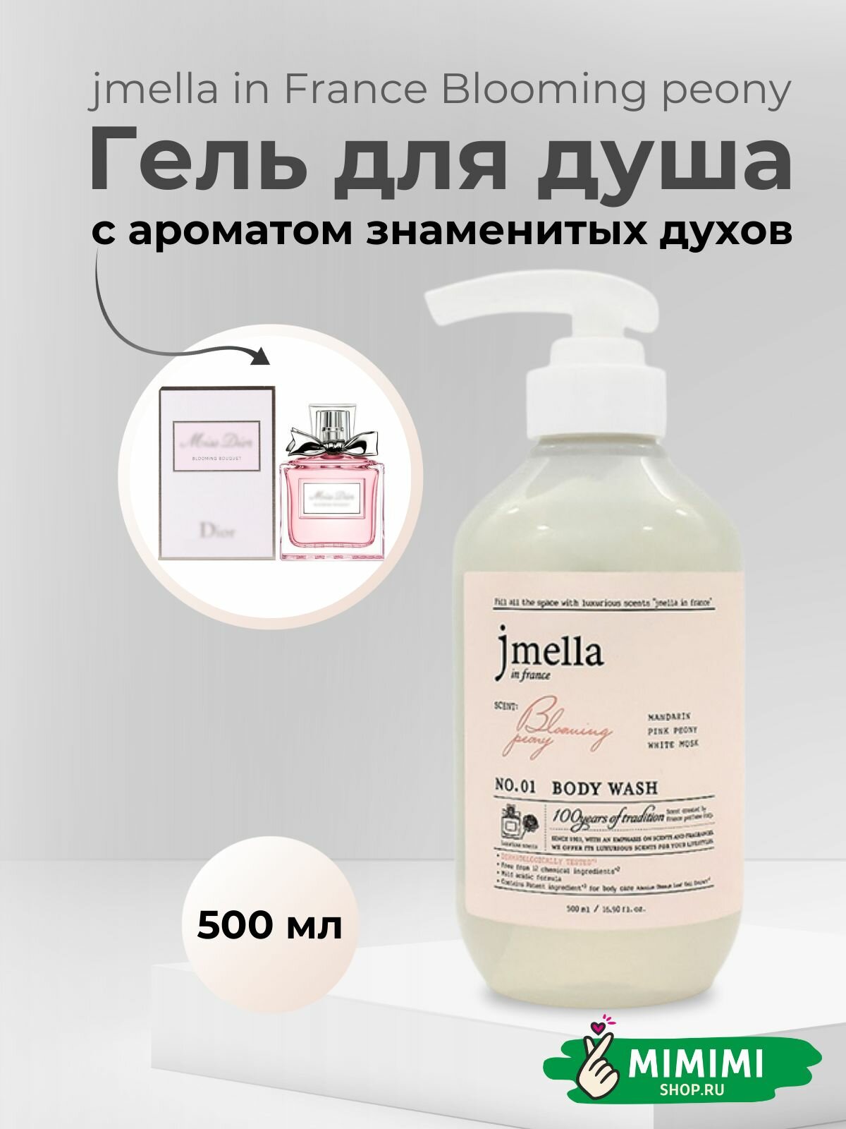 Jmella Гель для душа парфюмированный "Цветущий пион" 500мл In France Blooming Peony Body Wash