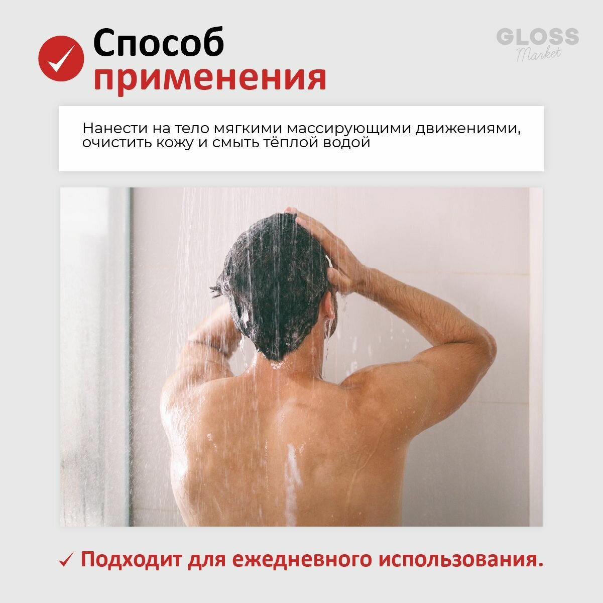 | Способ применения | Выдавить немного геля на влажную мочалку или кожу, помассировать ее 2 минуты и смыть пену водой. |