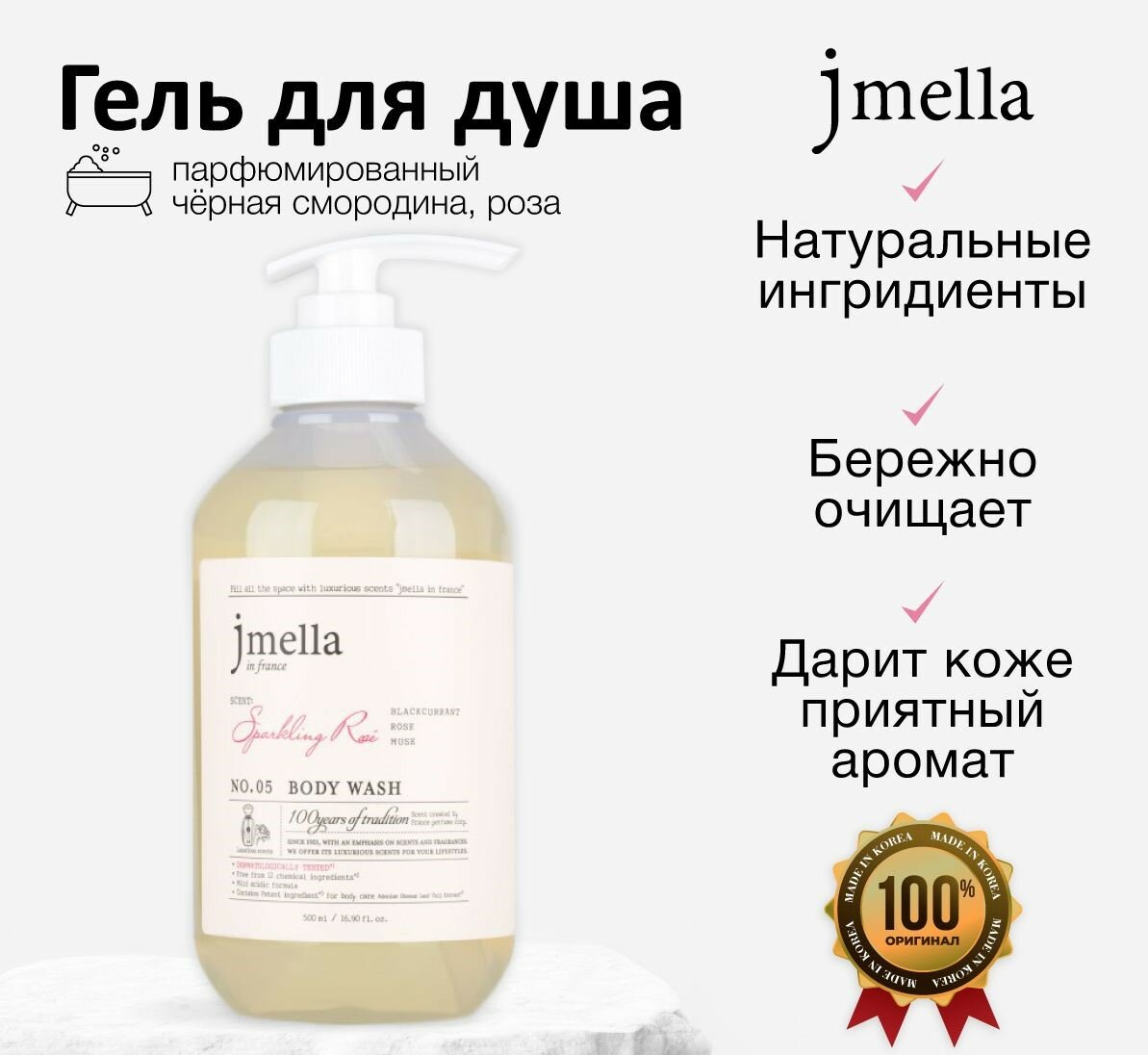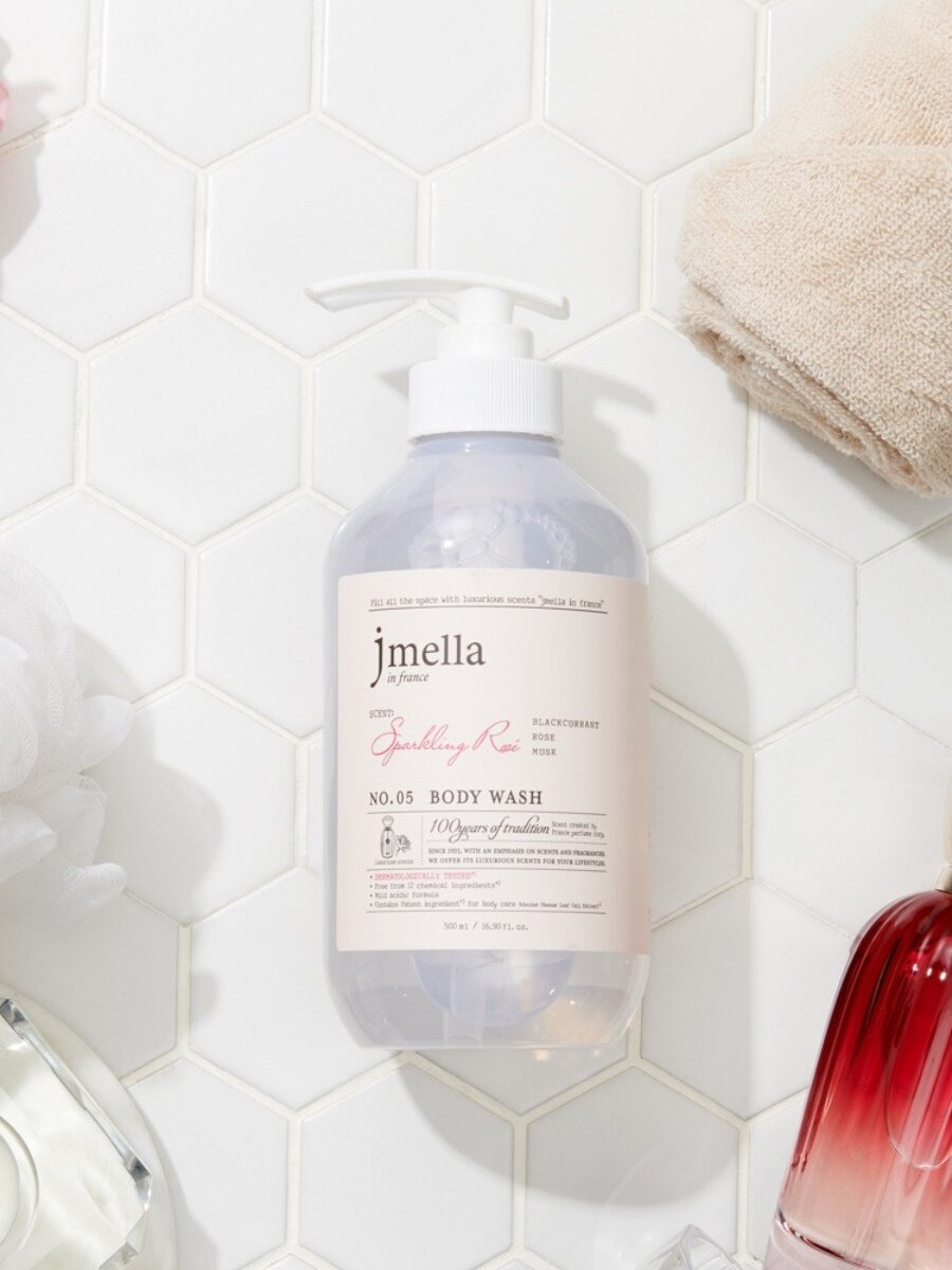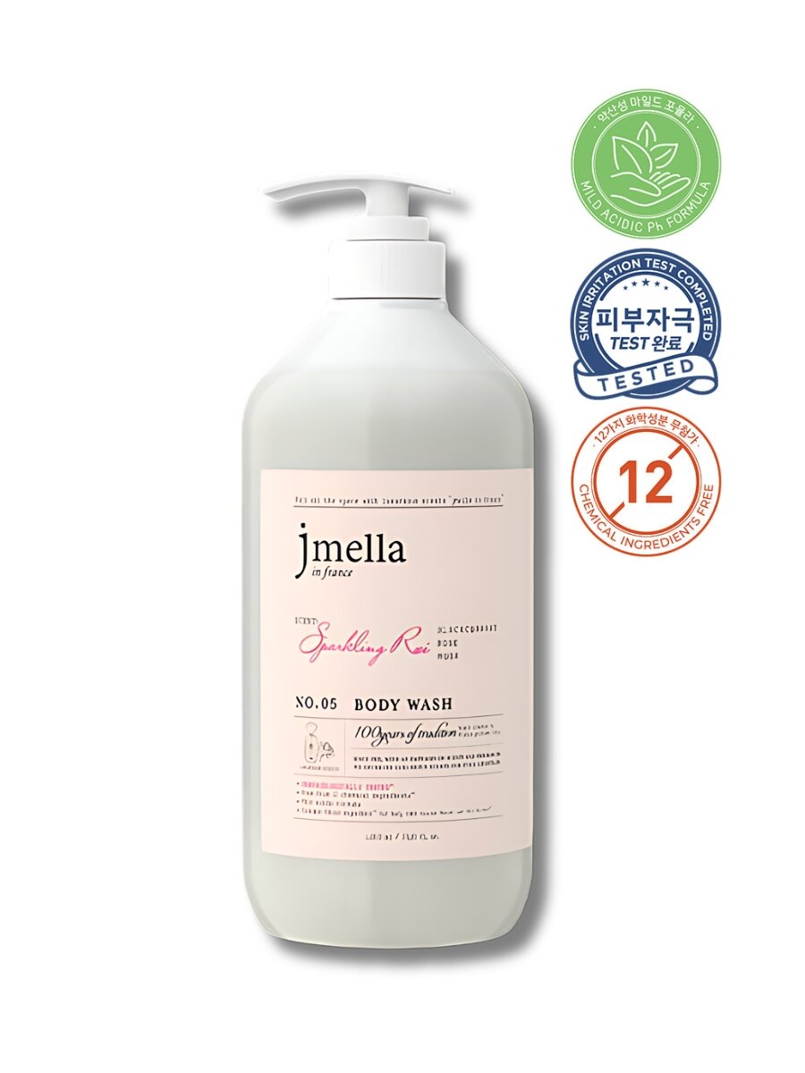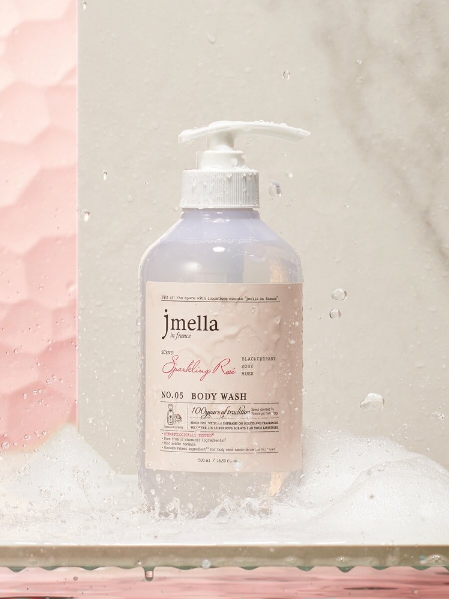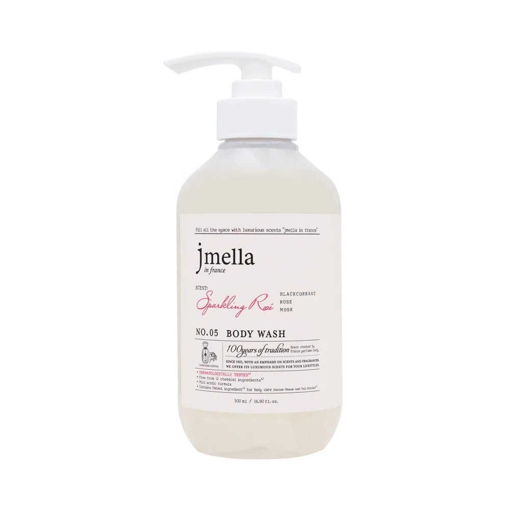 JMELLA Гель для душа парфюмированный с экстрактом чёрной смородины, розы и мускуса №5 In France Sparkling Rose' Body Wash 500ml Корейская косметика