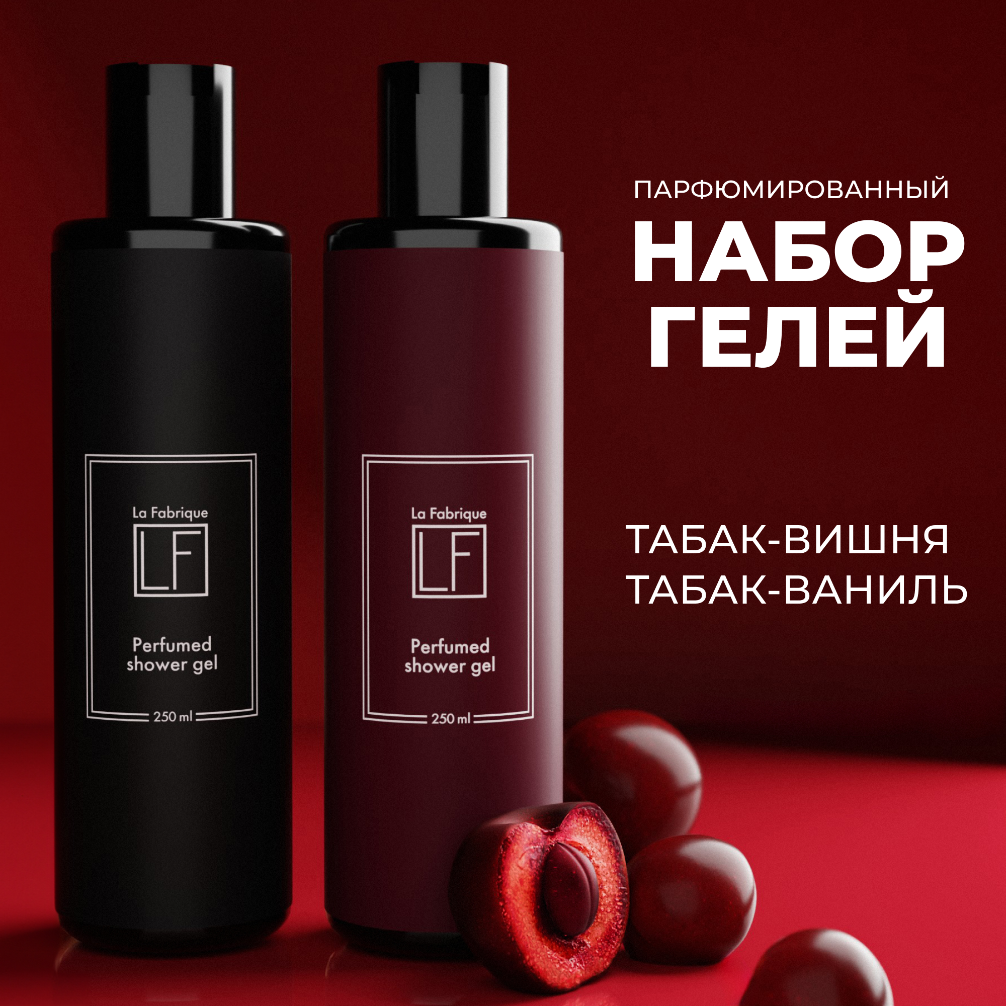 Купить Парфюмированные гели для душа La Fabrique с ароматом вишня, ваниль, 2 шт