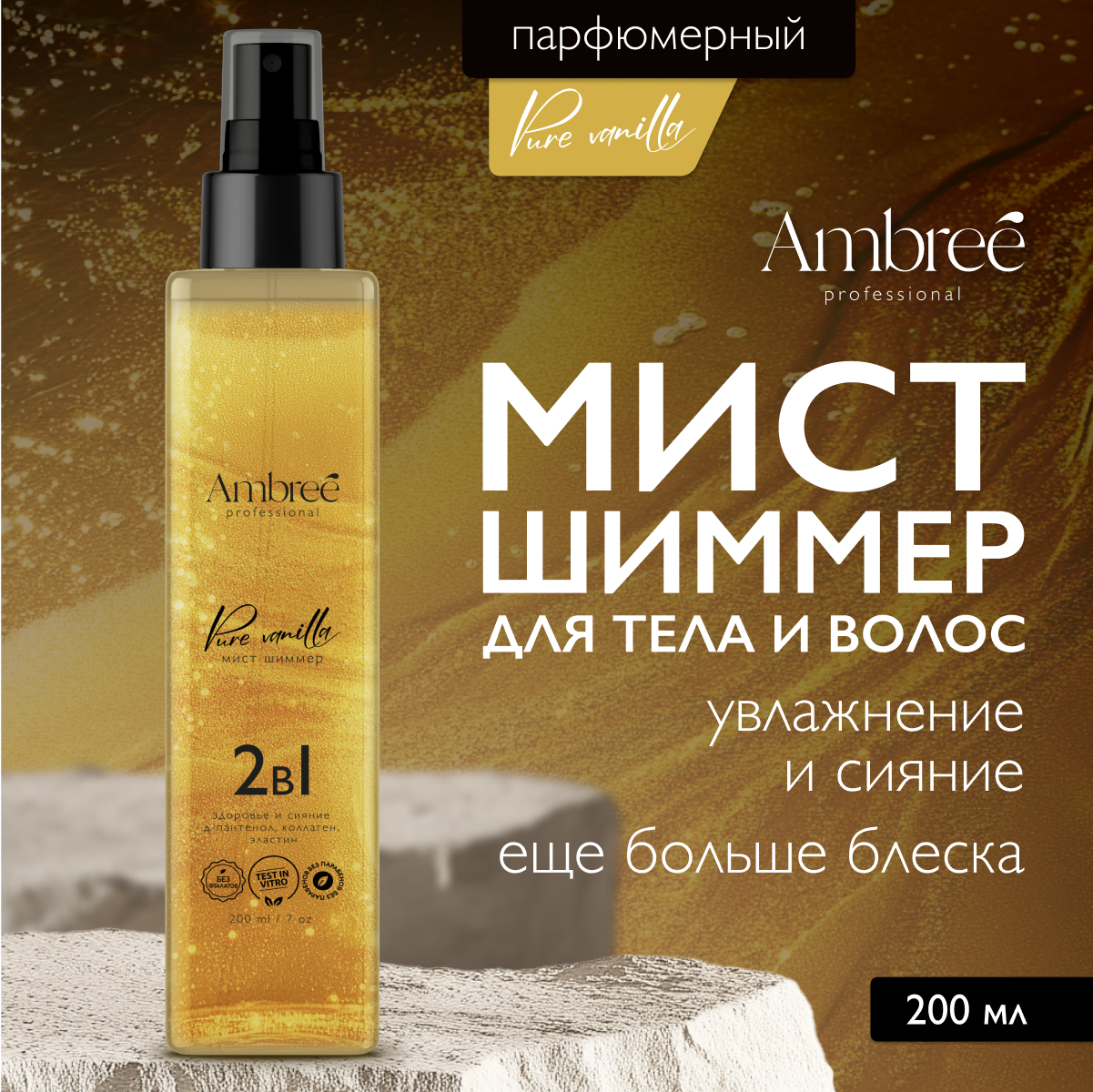 Купить AMBREE Professional Спрей для тела и волос с шиммером, 200 мл, Мист с блестками аромат Pure vanilla 2в1