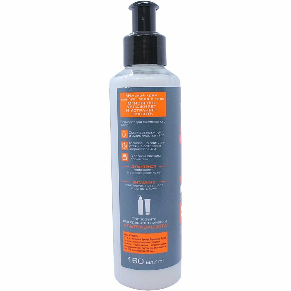 Мужской крем для лица, рук и тела Бархатные Ручки с Д-пантенолом и витамином С, 160 мл