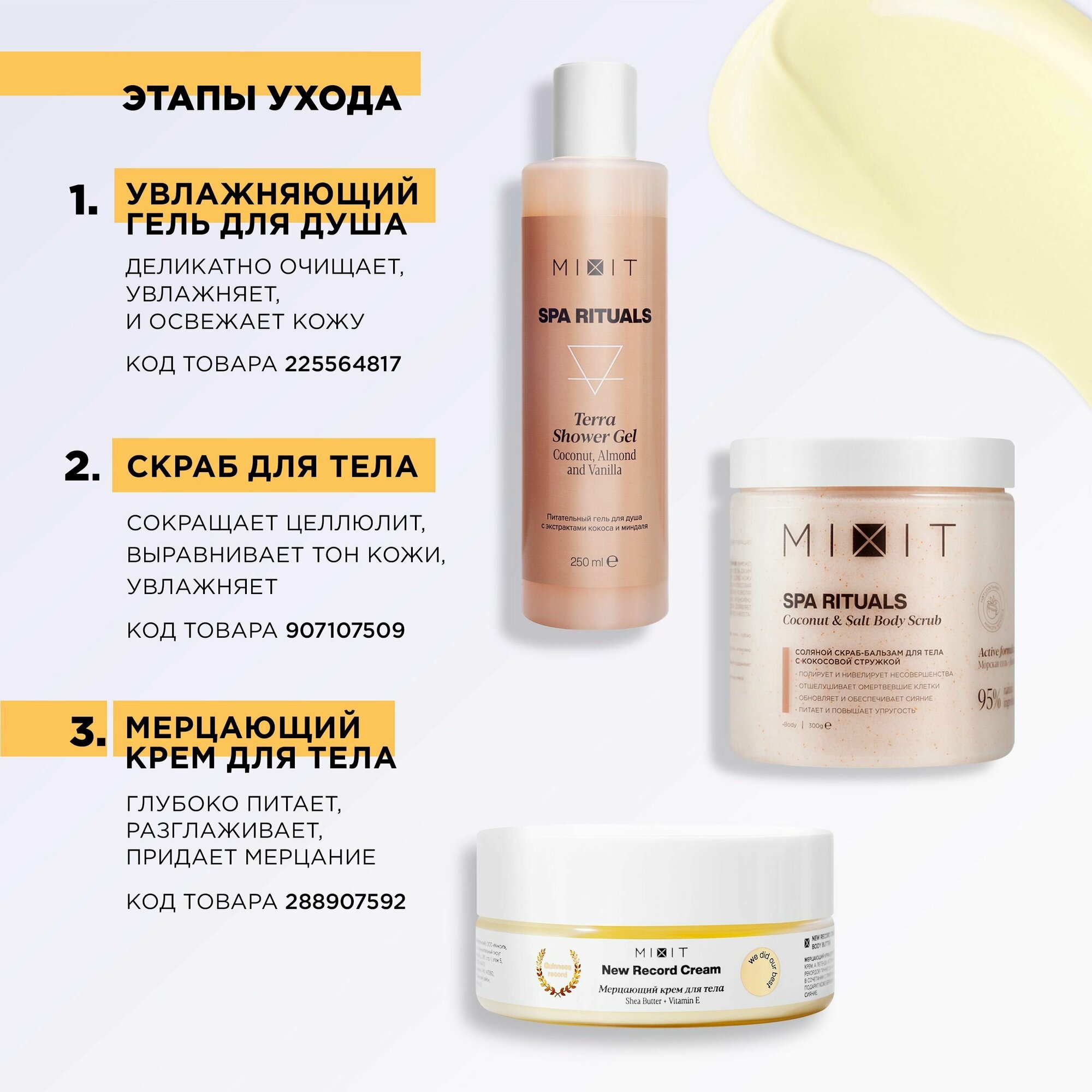 MIXIT Парфюмированные кремы для тела питательные с шиммером. Натуральное средство с маслом ши и экстрактом шиповника