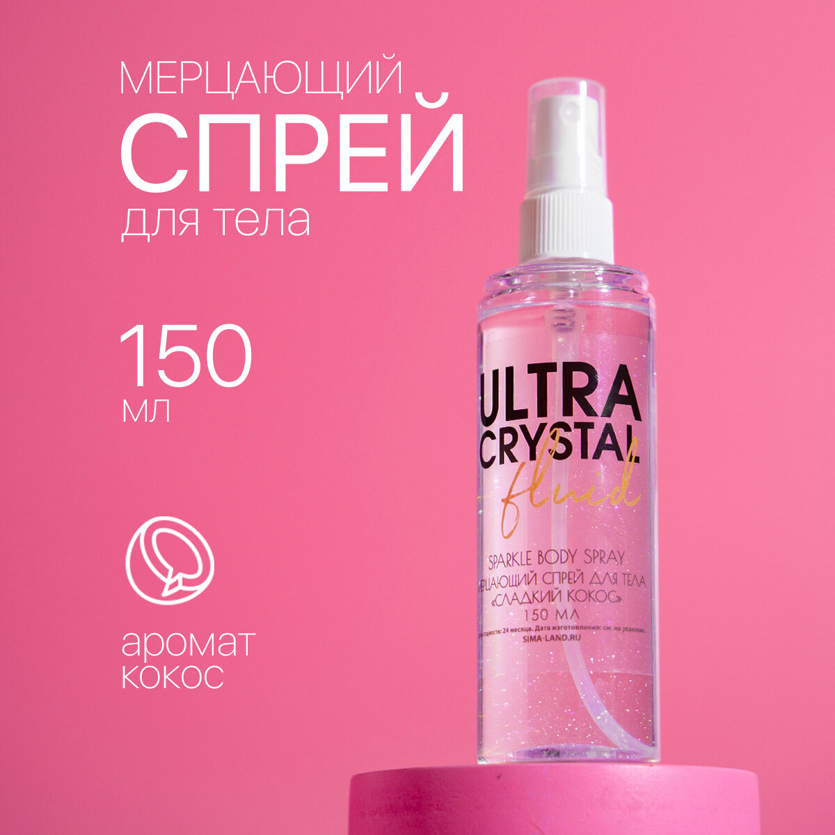 Мерцающий спрей для тела "Glow diamond", кокос, 150 мл интересное: