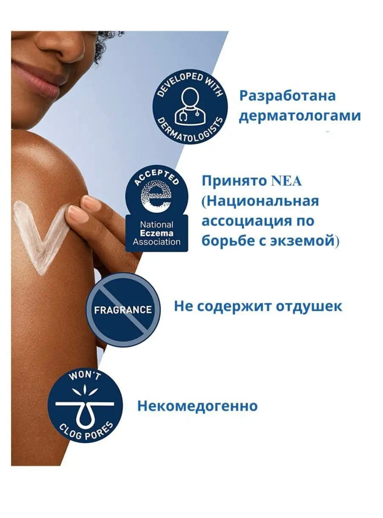 Хорошо увлажняет Быстро впитывается Нет ощущения пленки на коже Без запаха |