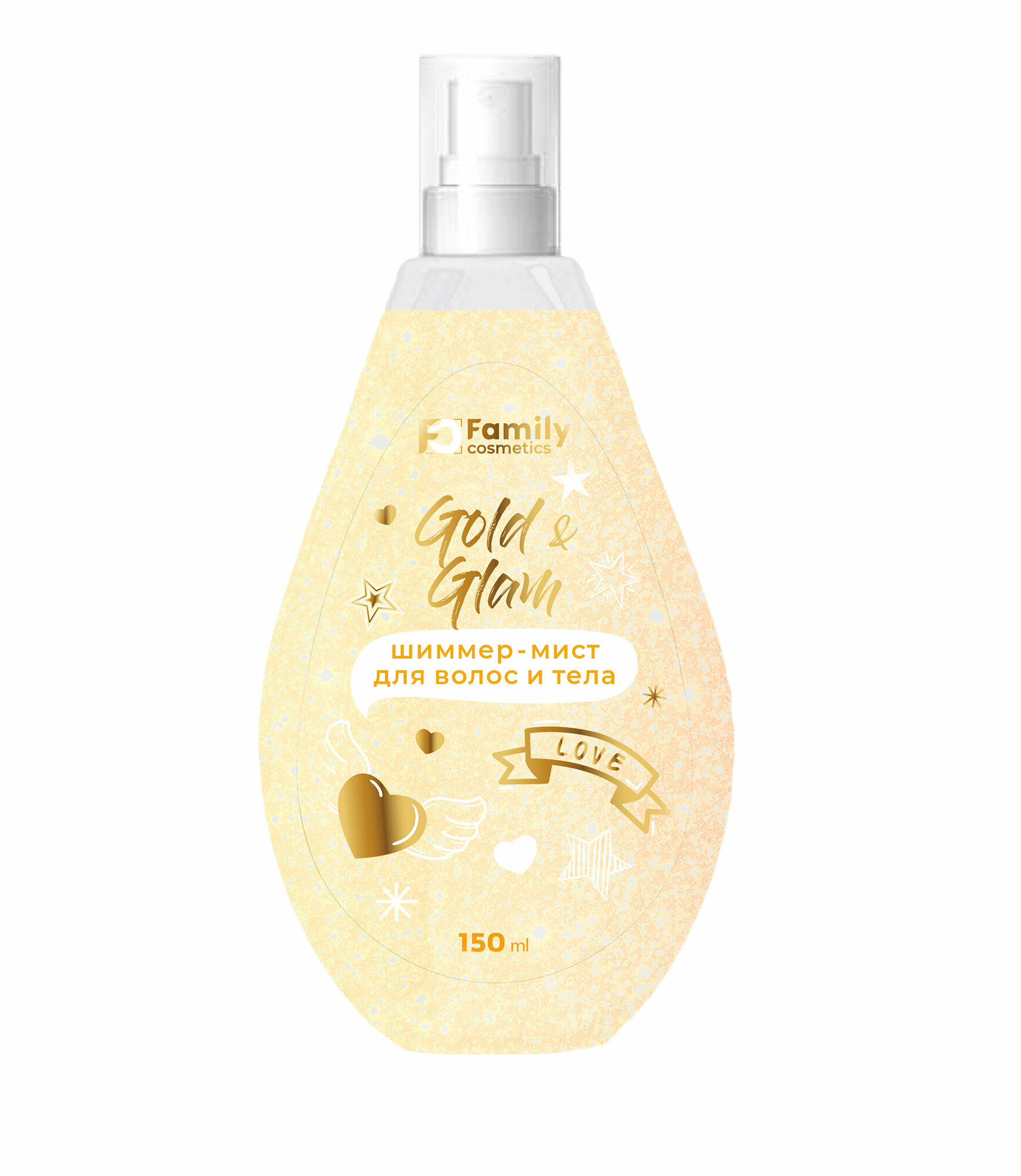 Шиммер-мист для волос и тела Family Cosmetics Gold & Glam, 150мл