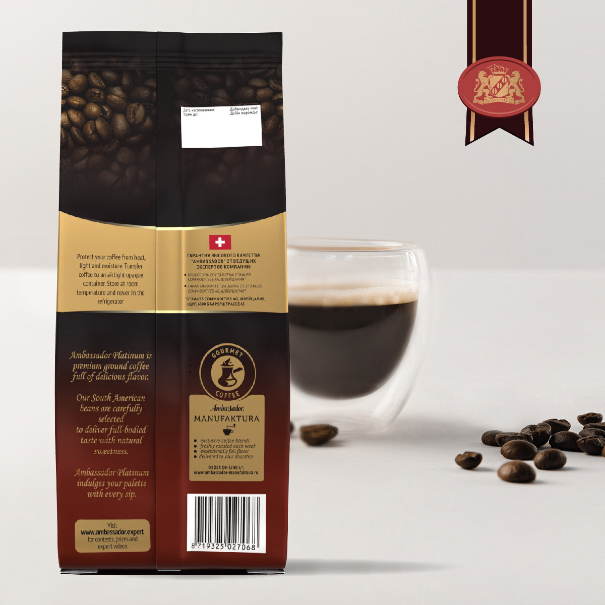 Купить Кофе молотый AMBASSADOR "Platinum", 100% арабика, 250 г, вакуумная упаковка