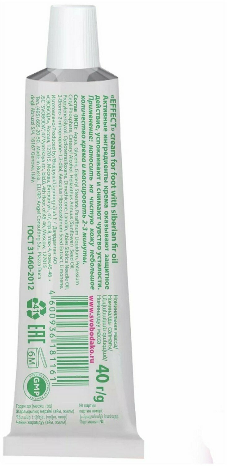 Свобода Крем для ног, Эффект, с пихтовым маслом, 40 гр, 6 шт