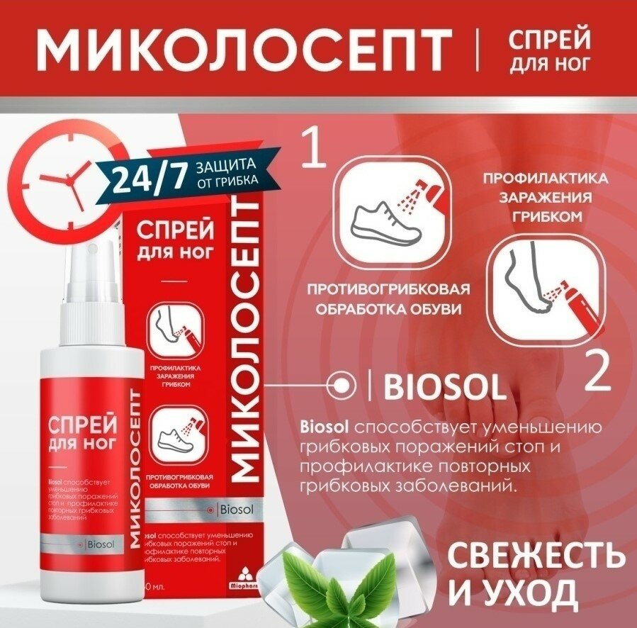 Миколосепт спрей крем от грибка для ног, средство от грибка на ногах, спрей от запаха и пота охлаждающий 150 мл. Дезодорант для обуви. интересное: