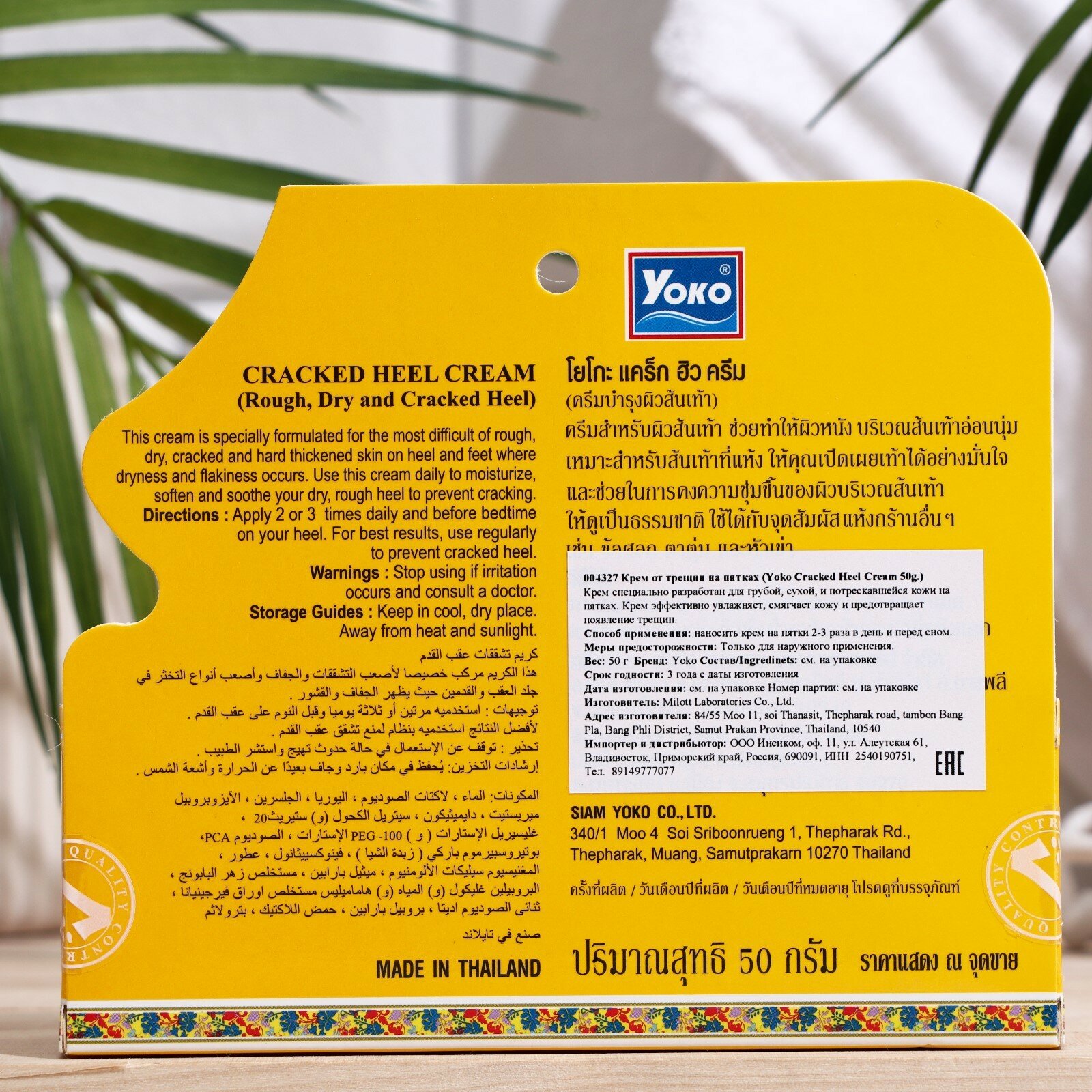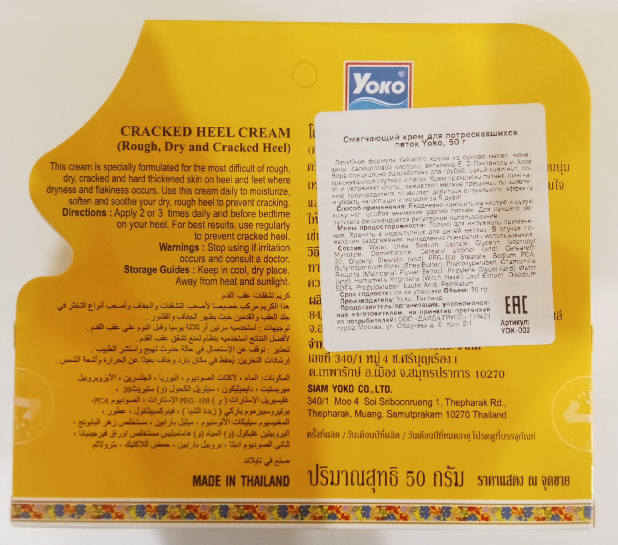 Yoko Супер эффективный крем для ног-устраняет трещины и сухость 50 гр Cracked Heel Cream 50 g/Тайская косметика. интересное: