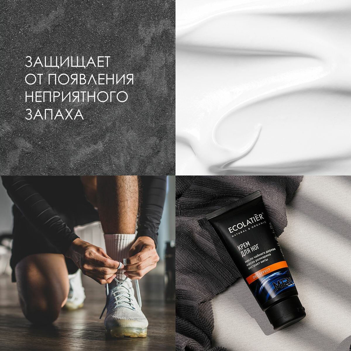 | Дополнительная информация | "Крем для ног DEO EFFECT ECOLATIER® MEN освежает и защищает кожу от появления неприятного запаха, способствует уменьшению дискомфорта в ногах. Быстро впитывается, эффективно увлажняет и смягчает кожу, обеспечивает ощущение чистоты и свежести на целый день. Содержит 95% ингредиентов натурального происхождения. Масло чайного дерева — природный антисептик, обладает бактерицидным и противовоспалительным действием. Масло ши глубоко увлажняет и питает кожу, делает ее мягкой. Масло розмарина обладает заживляющим воздействием на кожу. Экстракт мяты оказывает успокаивающий и охлаждающий эффект, обеспечивает коже ощущение свежести и комфорта." |
