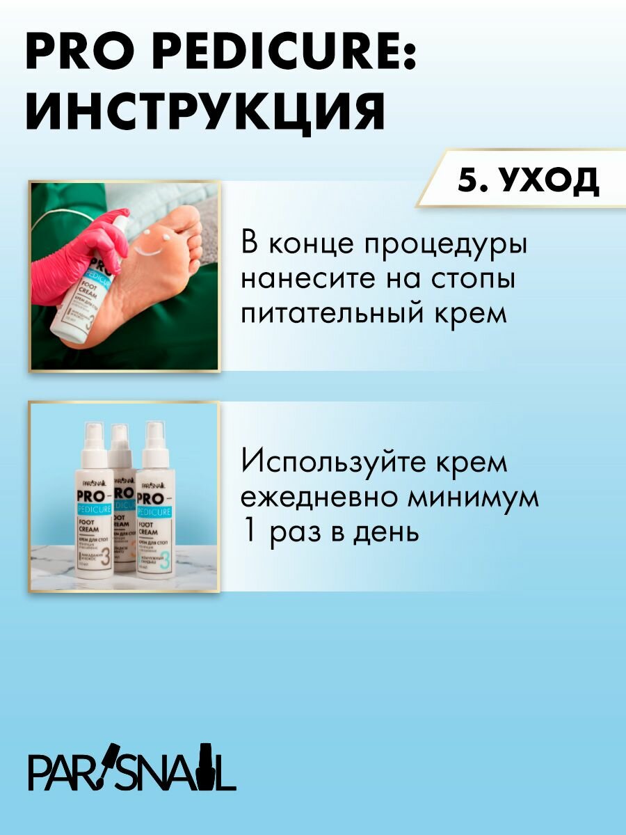 | Способ применения | • Нанесите средство по вашему желанию либо только на проблемные участки, либо на всю стопу. • Не дожидаясь высыхания средства, замотайте стопу пленкой на 5-25 минут. • По истечении времени скатайте остатки кожи при помощи педикюрной терки или аппарата (диски, фрезы, колпачки). • Можно использовать как ремувер для удаления подногтевых и околоногтевых мозолей. • Меры предосторожности: – Наносить состав в перчатках. – Не рекомендуется для самостоятельного использования лицами моложе 16 лет. – Избегать попадания в глаза. – Хранить в недоступном для детей месте. – Не использовать при глубоких повреждениях стоп (язвы, кровоточащие ранки) и грибковых заболеваниях. |