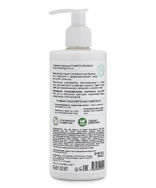 Купить Крем для рук Planeta Organica Pure гипоаллергенный, 300 мл