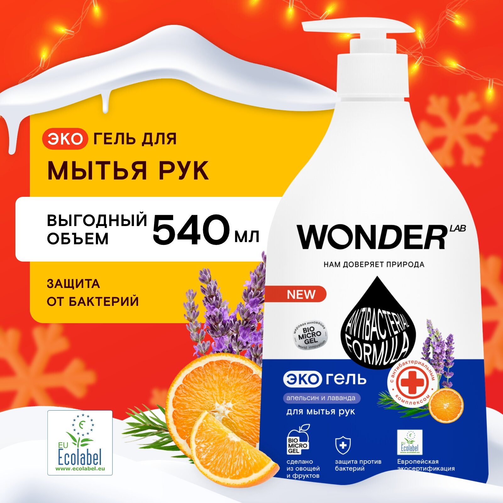 Жидкое мыло антибактериальное, гель для мытья рук WONDER LAB, 540 мл интересное:
