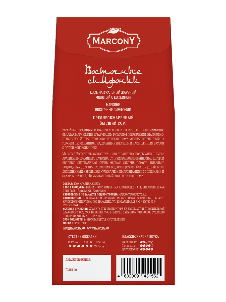 Кофе молотый MARCONY Восточные симфонии 250г интересное: