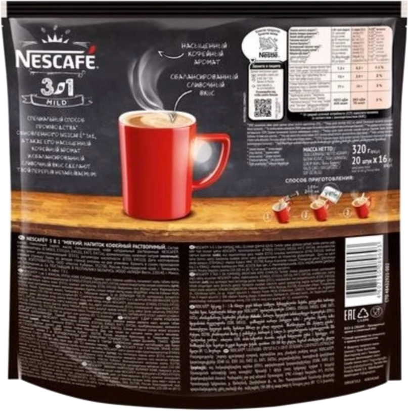 NESCAFÉ® 3в1 Мягкий, напиток кофейный, растворимый, порционный, пакет 50 порций по 14.5г