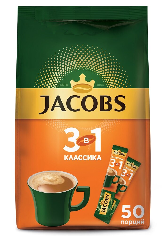 Растворимый кофе Jacobs 3 в 1 Классика, в стиках, 50 уп., 675 г
