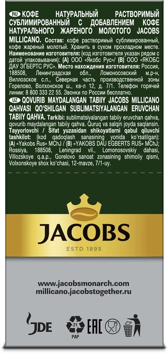 СохранитьКофе молотый в растворимом Jacobs Millicano в стиках, 26 шт х 1,8г интересное: