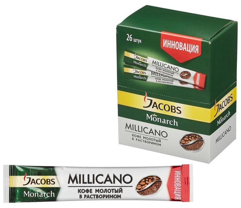 Кофе растворимый JACOBS "Millicano", сублимированный, комплект 26 пакетиков по 1,8 г, 4251154