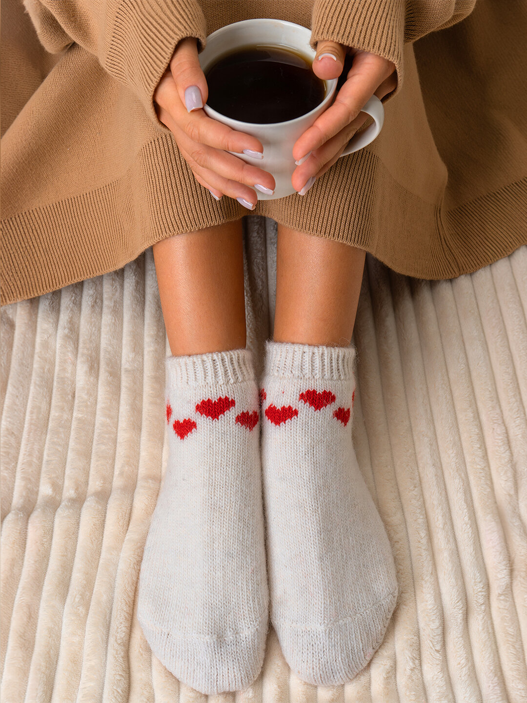 Носки женские шерстяные зимние с рисунком HappyFox HFBN2332 сердечки.белый 37-40 интересное: