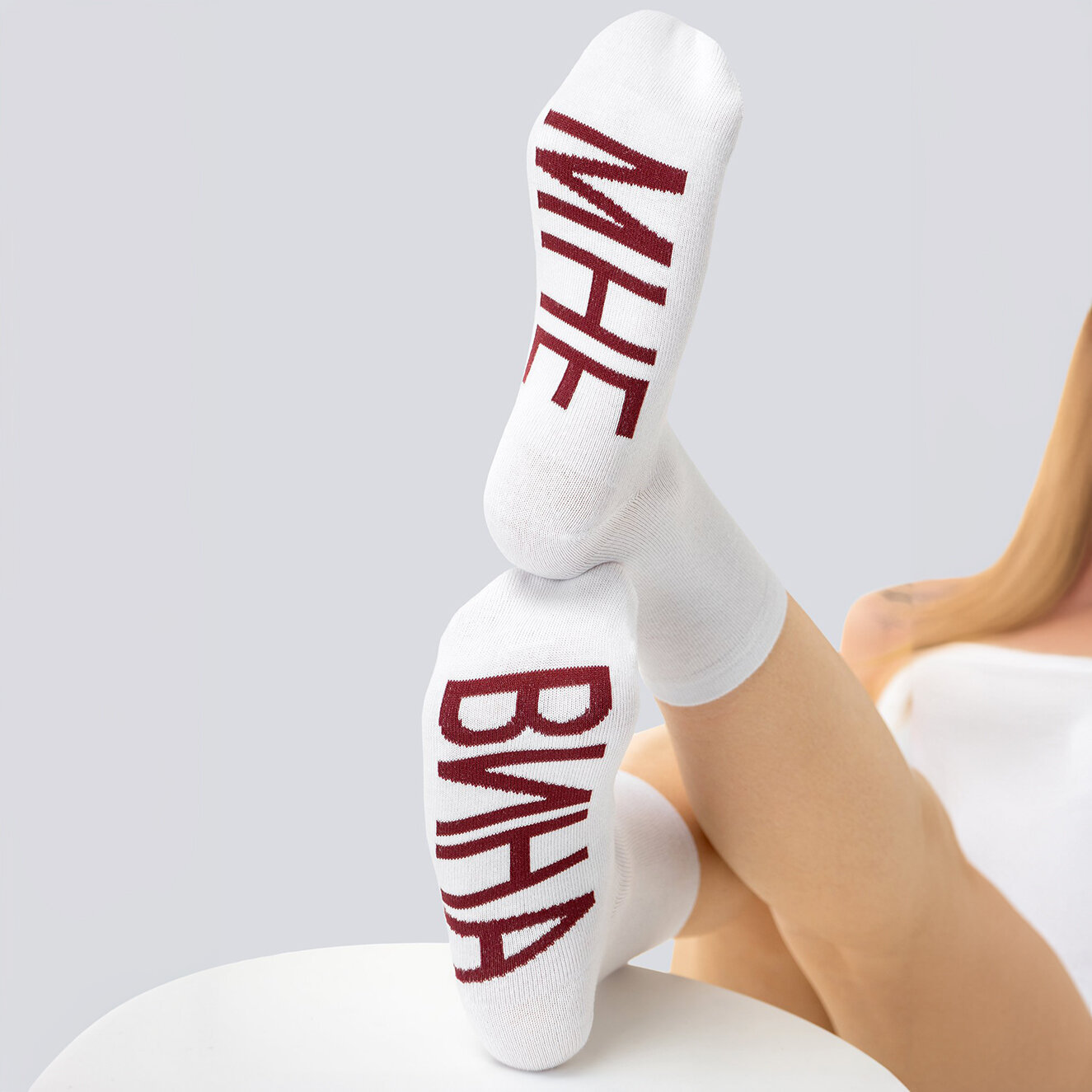 Купить Носки Happyfox высокие с прикольными надписями на стопах HF0159вина.мне.белый