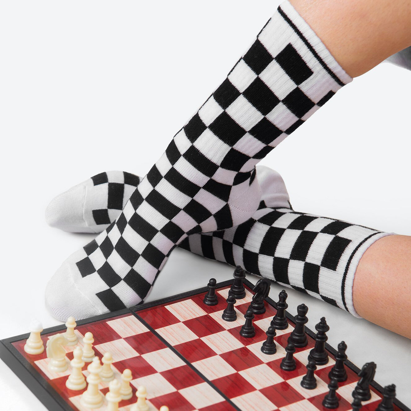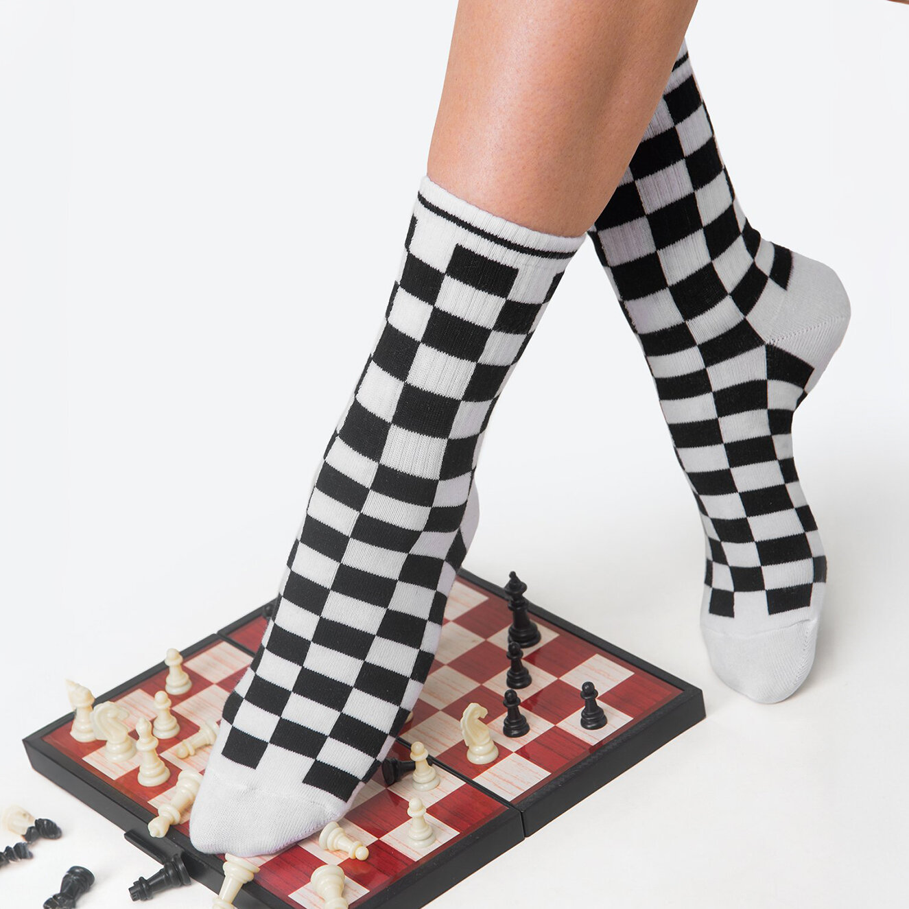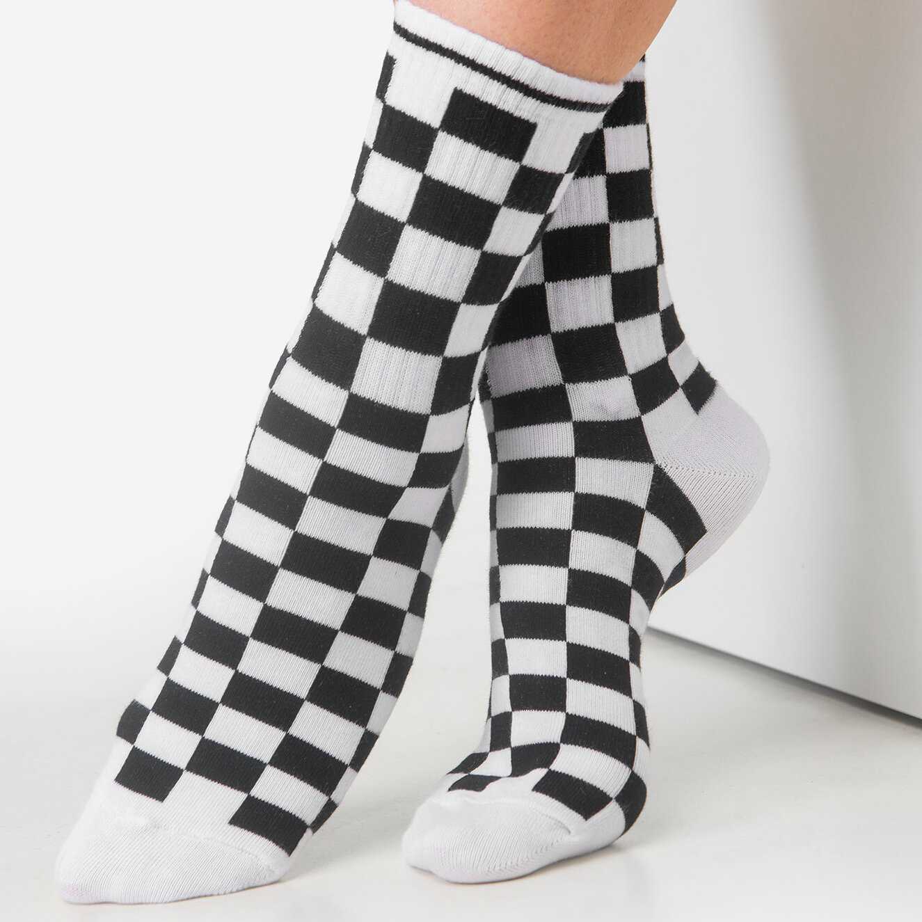 Купить Носки Happyfox высокие с прикольной надписью и рисунком HF0241шахматка.белый.черный