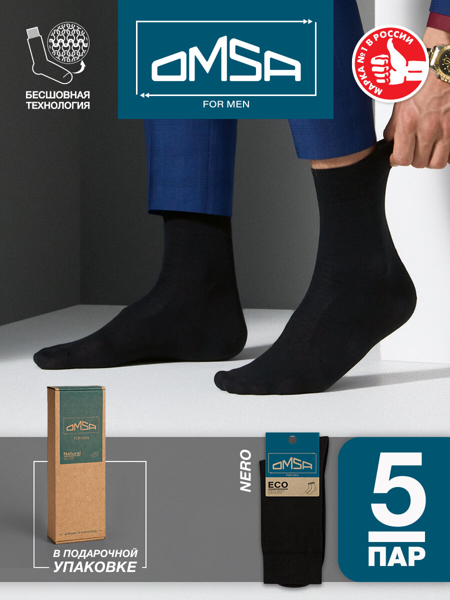 Носки мужские OMSA ECO 401, высокие, комплект 5 пар в упаковке "Крафт", Цвет Nero, Размер 42-44
