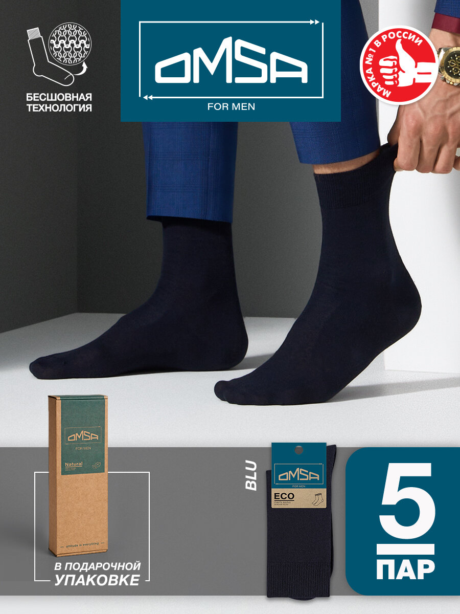 Купить Носки мужские OMSA ECO 401, высокие, комплект 5 пар в упаковке "Крафт", Цвет Blu, Размер 42-44